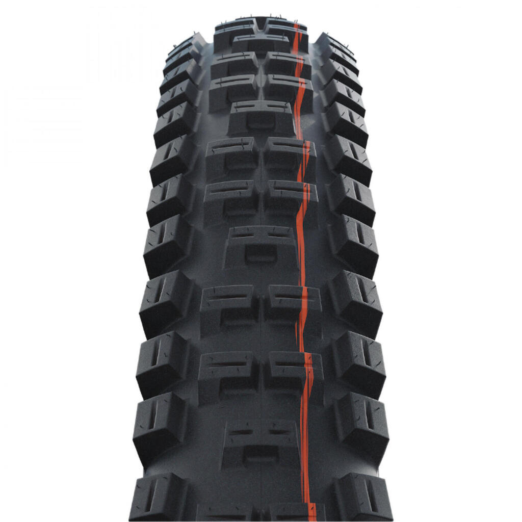 The best tire for your mountain bike: Schwalbe Gravity Big Betty E50, competition-approved with a density of 67 tpi and a diameter of 29 inches.