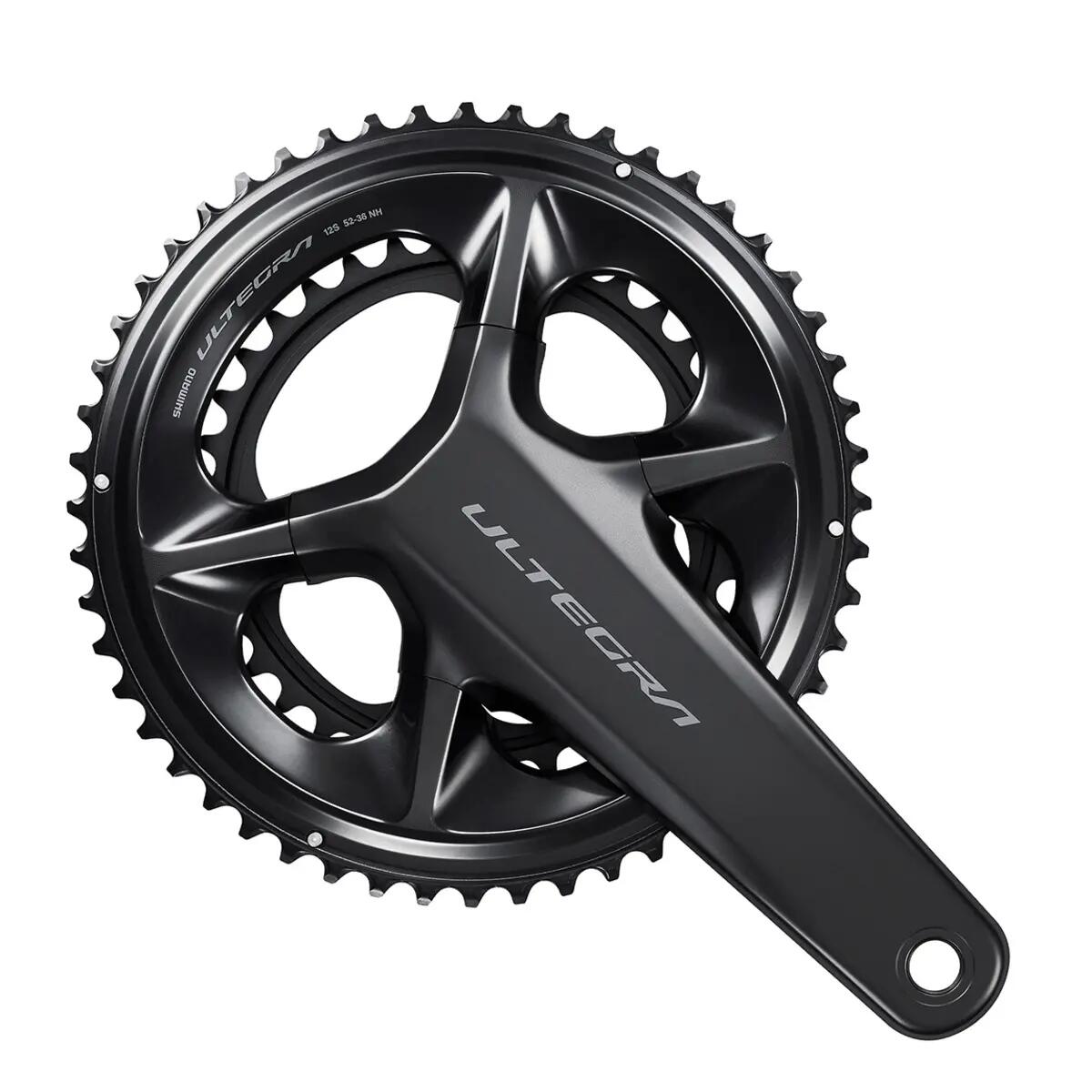 The new Ultegra FC-R8100 crankset retains the same speed and precision in shifting, as well as ever-efficient power transfer, but with even more crank length options. With lengths from 160 to 175 mm, Ultegra cranks can now be suitable for short riders, triathletes, and those curious about having shorter cranks. An integral part of the new 12-speed road range, the FC8100 crankset benefits from the legendary chainring changes and the overall efficiency of the Shimano drivetrain. With new enhancements for ever smoother 12-speed gear changes, the Ultegra crankset is now offered in lengths from 160 to 175mm, for increased performance and better position for shorter riders, triathletes and riders. riders with specific position requirements. The + products: Optimal balance between stiffness, strength, weight and rotational performance. Hollowglide structure reduces weight while retaining strength for better power transfer and faster, more precise front shifting. Details: Compatible with Shimano 12 speed drivetrain Compatible chain: CN-M8100 Teeth: 50-34 teeth Q Factor: 148 Chain line: 44.5 Bottom bracket: 24mm (Shimano Hollowtech II) Weight: 700g Sold without bottom bracket