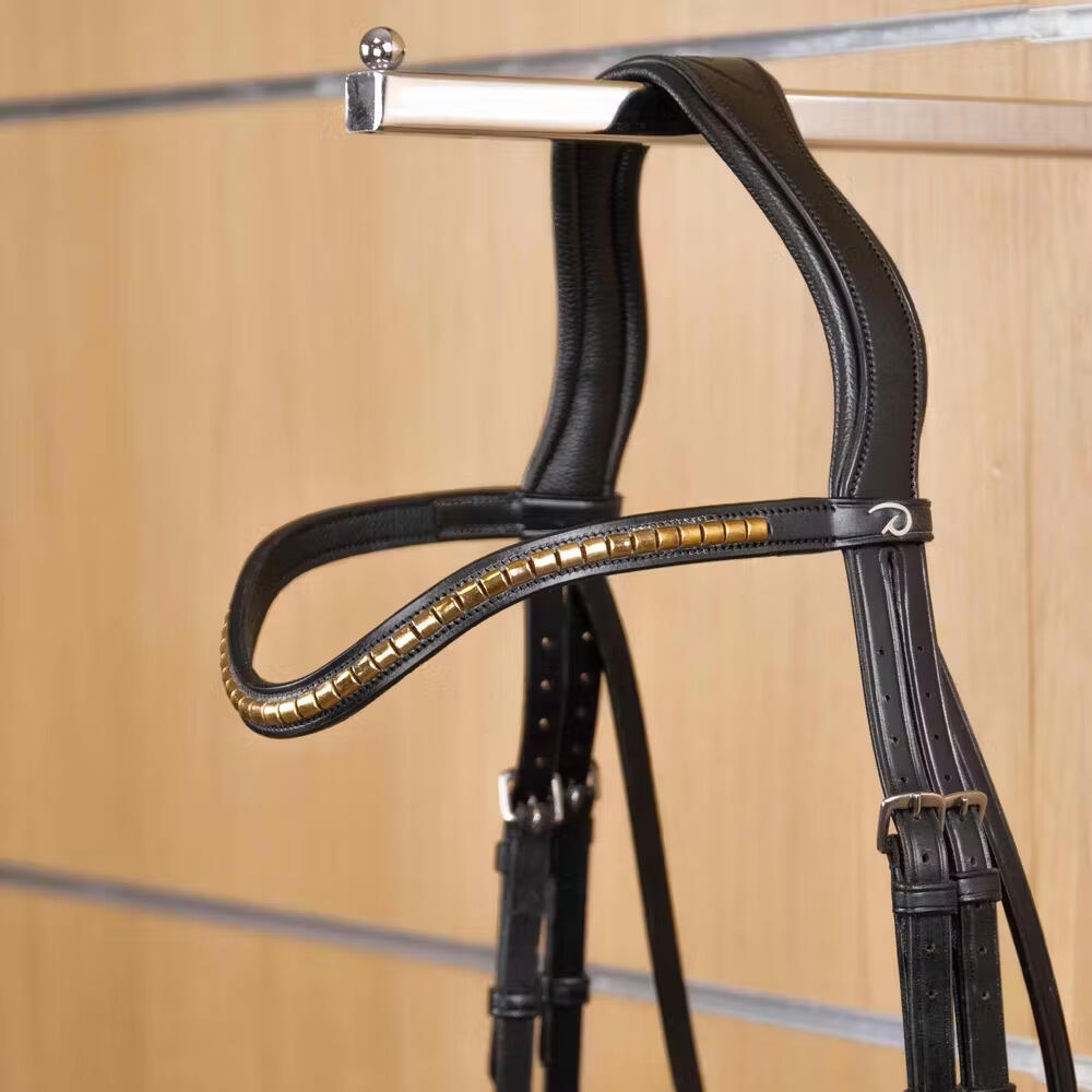 Experience the comfort and quality of the Dy'on brass bridle for a perfect riding experience with your horse.