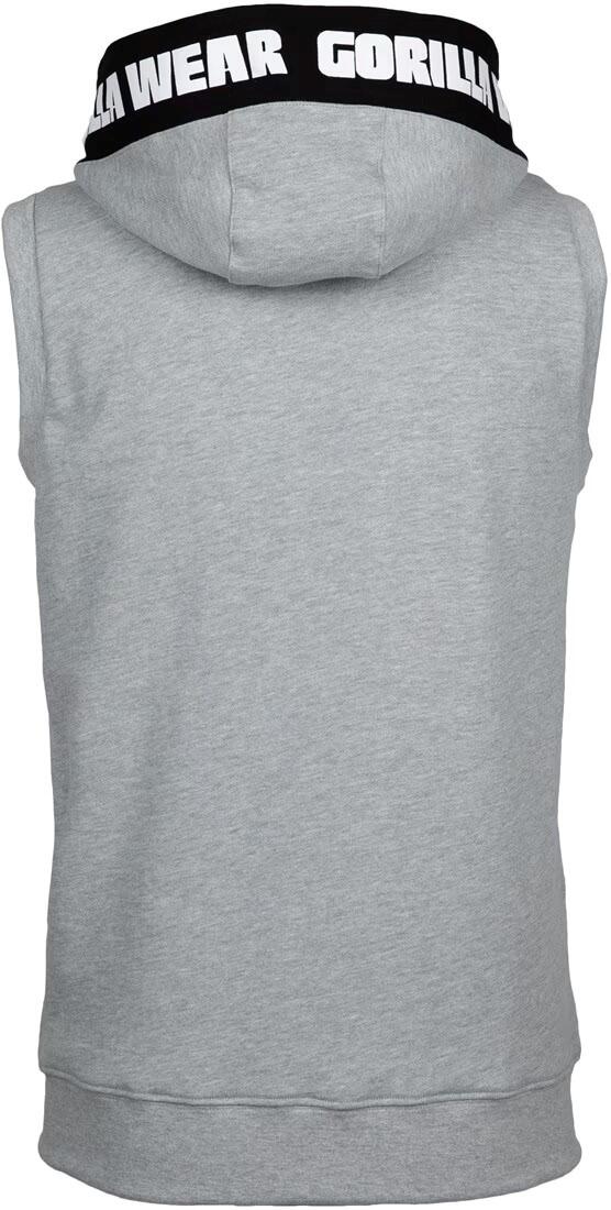 Opt for the Gorilla Wear Milwaukee sleeveless hooded sweatshirt: a slimline style, a print on the hood and a rubber logo for your workout.