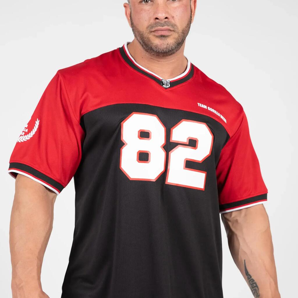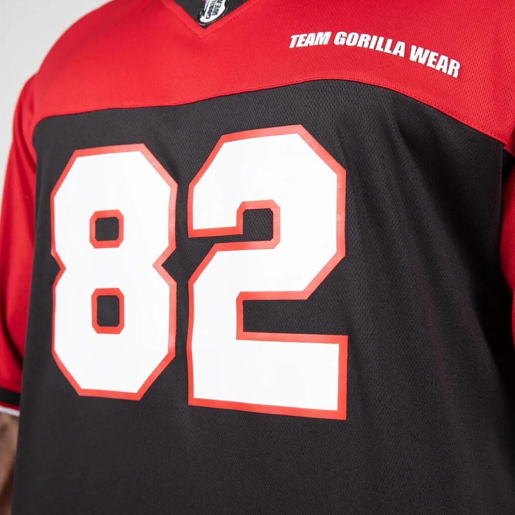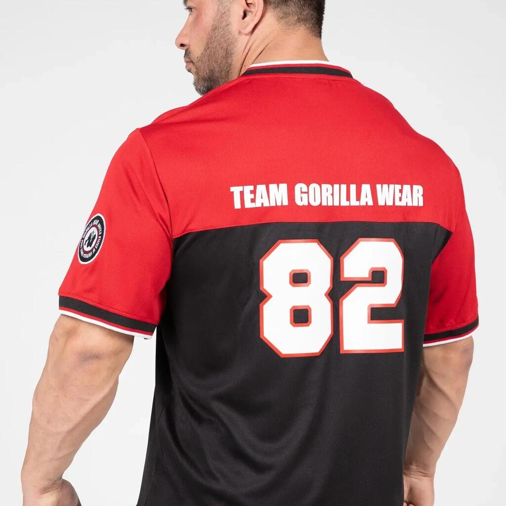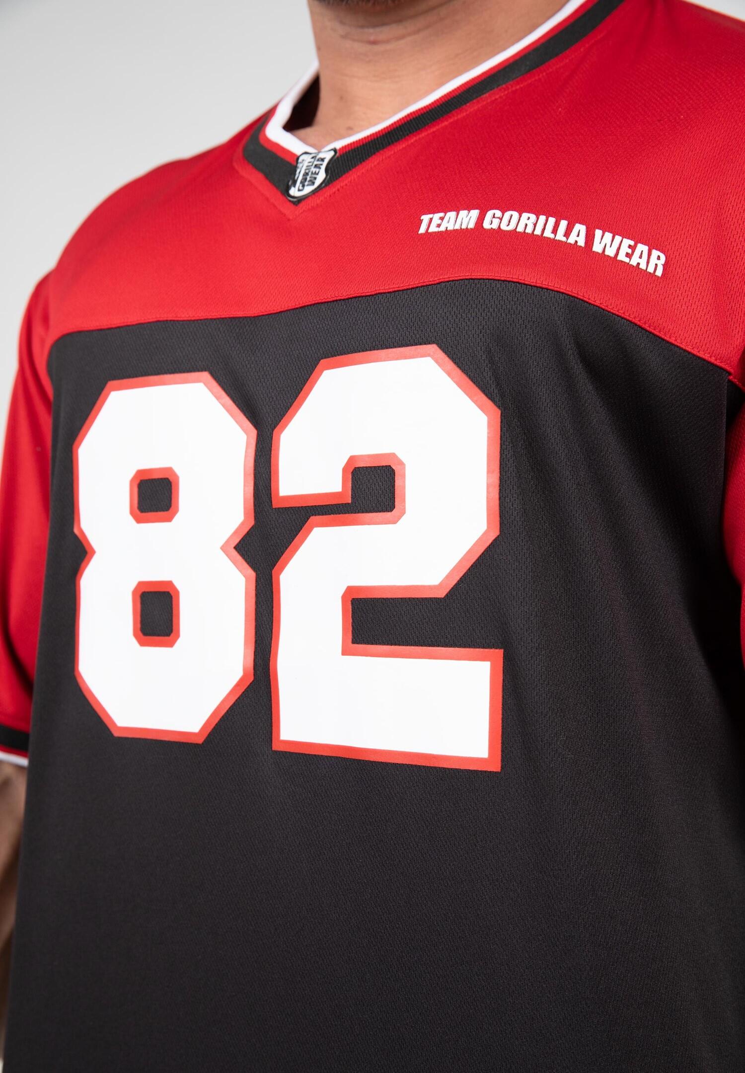 Dominate your training with the Trenton soccer shirt from Gorilla Wear. Oversized cut, V-neck and breathable polyester mesh fabric.