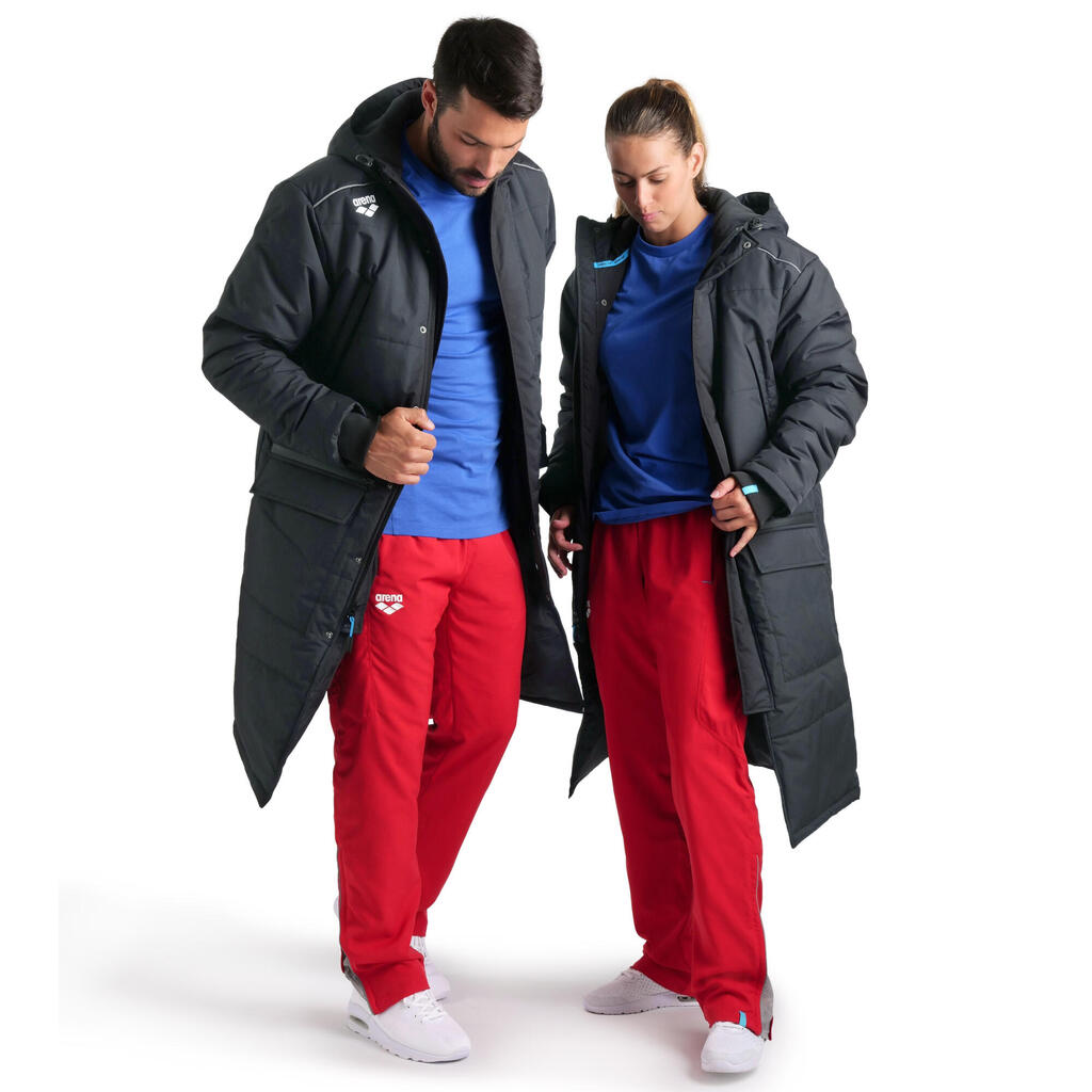 Discover our Arena swimming parka, ideal for keeping you warm during cold-water training sessions and featuring many practical pockets. Dive in comfort!