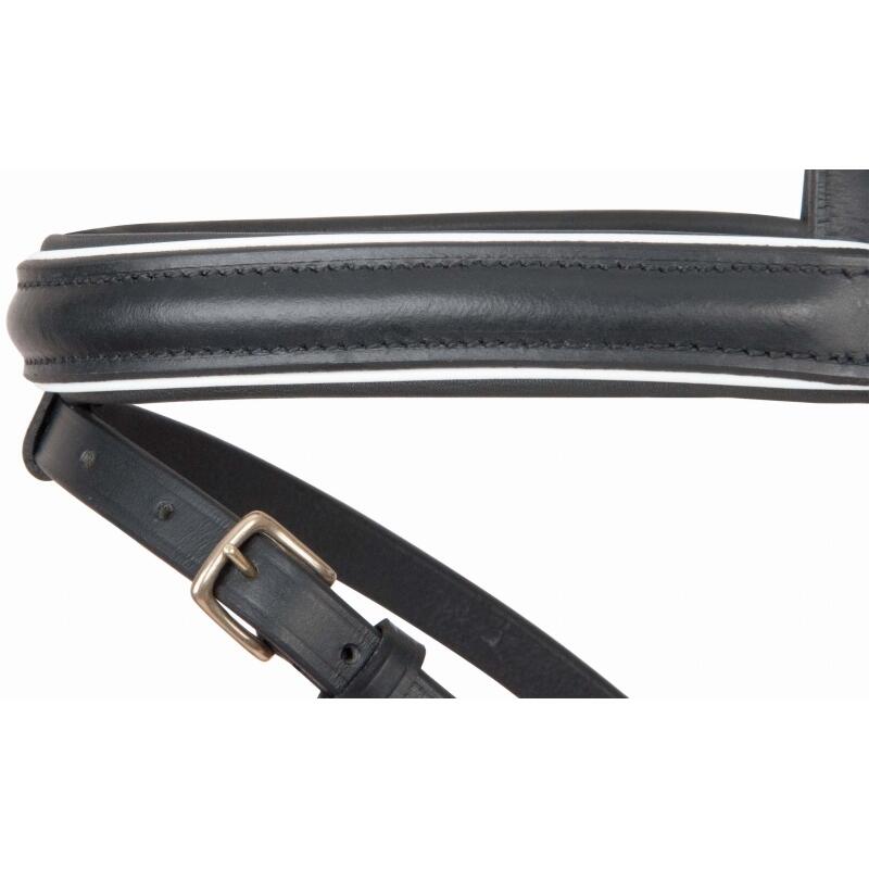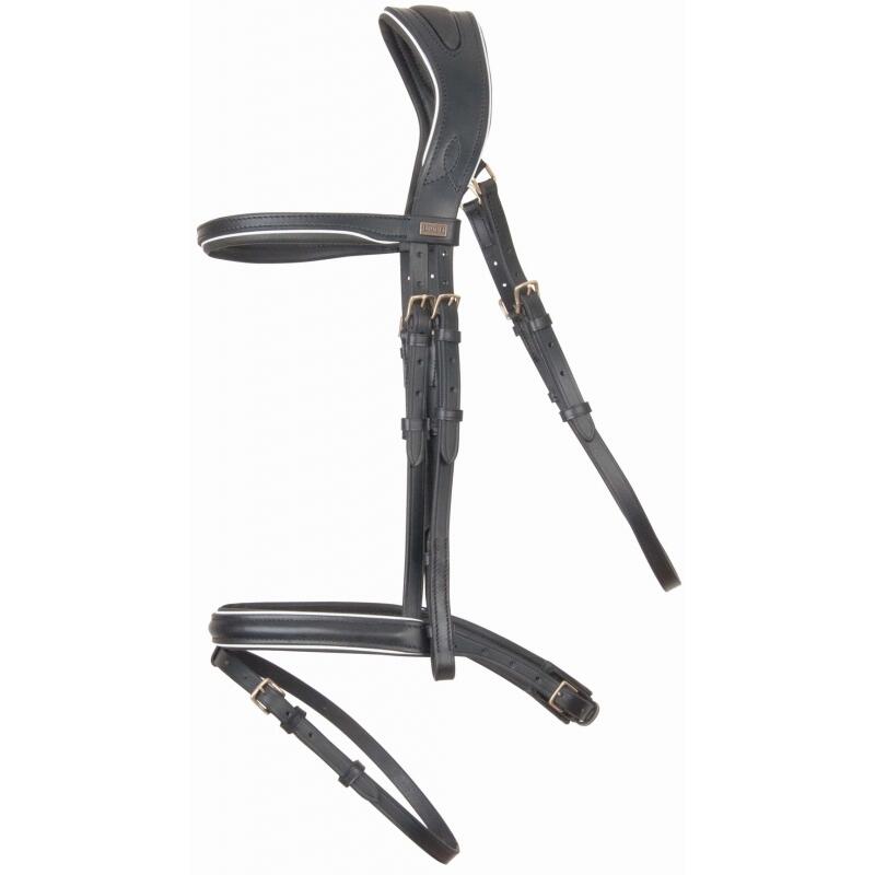 Elegant T de T bridle for comfortable riding with recessed headpiece, flared noseband and high-quality materials for your horse's well-being.