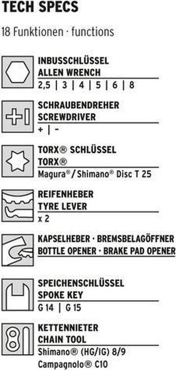The perfect mini-tool for all cyclists, with 18 functions to solve any problem. From SKS, available exclusively from TOM 18.