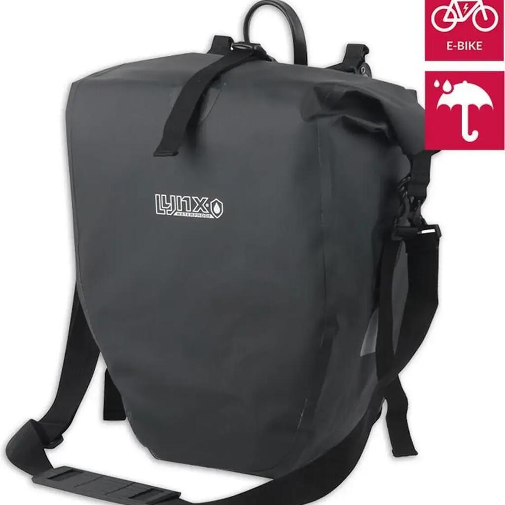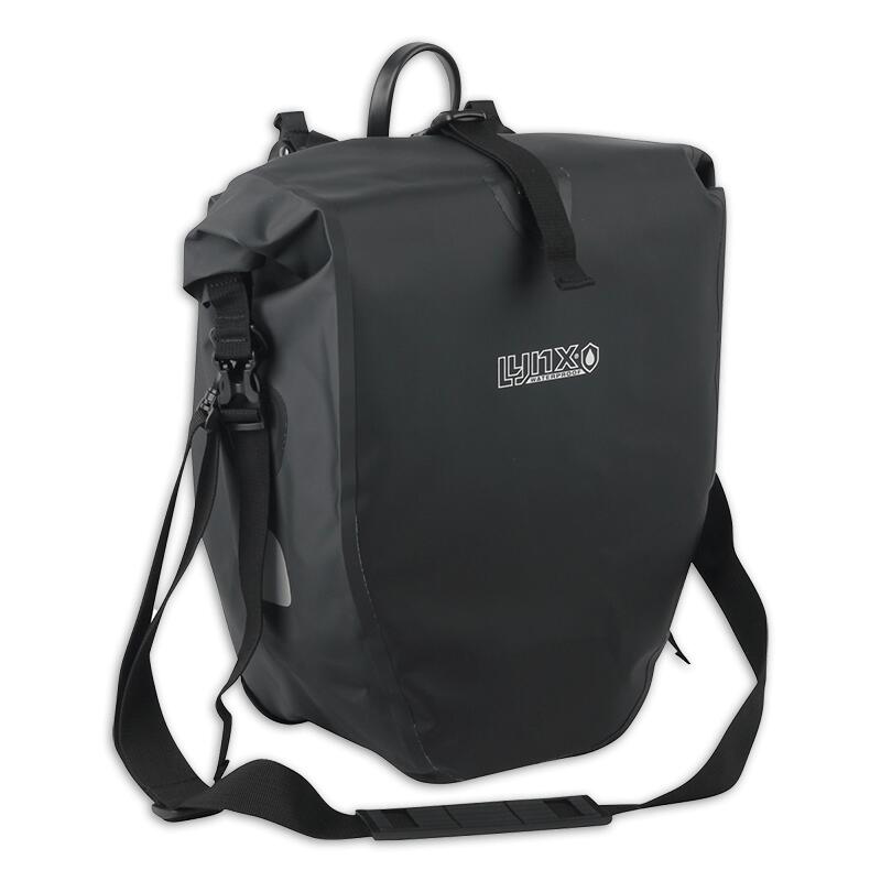 The black Rocky single cycle bag from Lynx is a high-quality bag made from 100% waterproof tarpaulin.