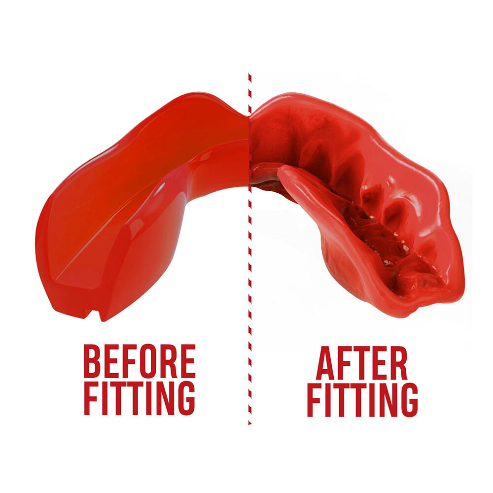 SafeJawz kids mouthguard with Remodel Tech™ and Jaw Secure™ protects jaw and teeth while offering a repeatable custom fit and effective impact absorption for young athletes.