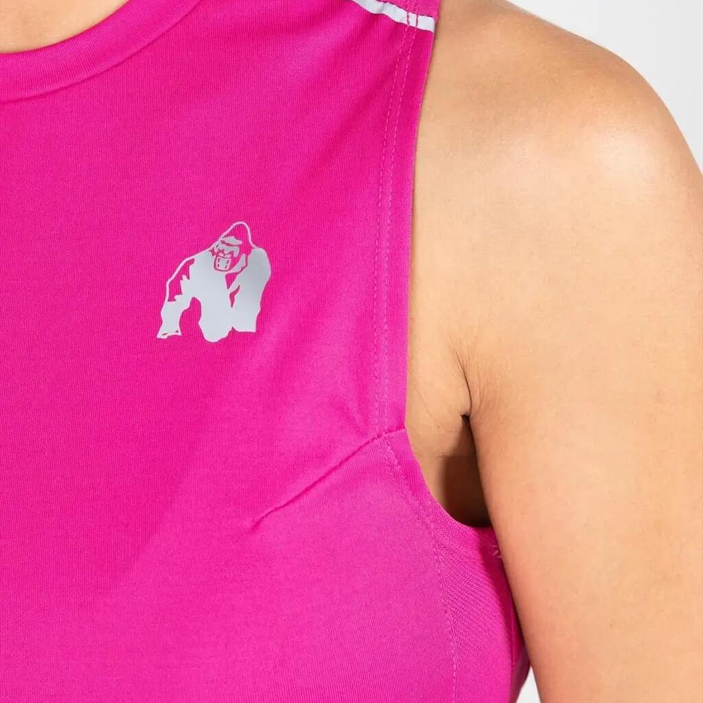 A lightweight, stylish women's tank top for your workouts, with reflective details and an extended back hem. From Gorilla Wear.