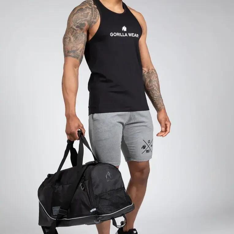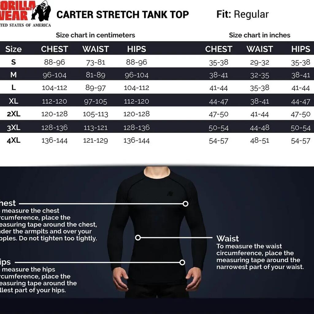 The stretch tank top Gorilla Wear Carter, perfect for workouts, with logo printed on the chest. Quality stretch fabrics.