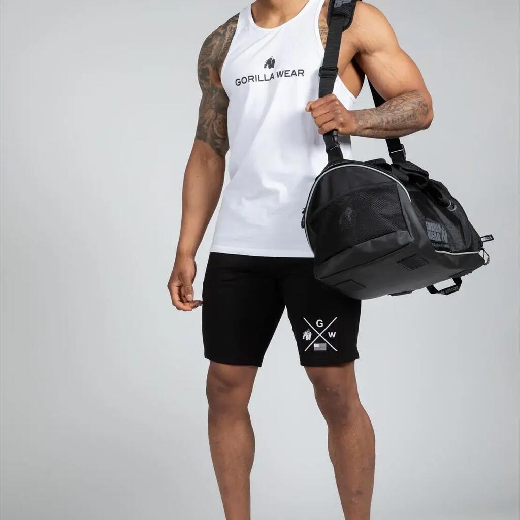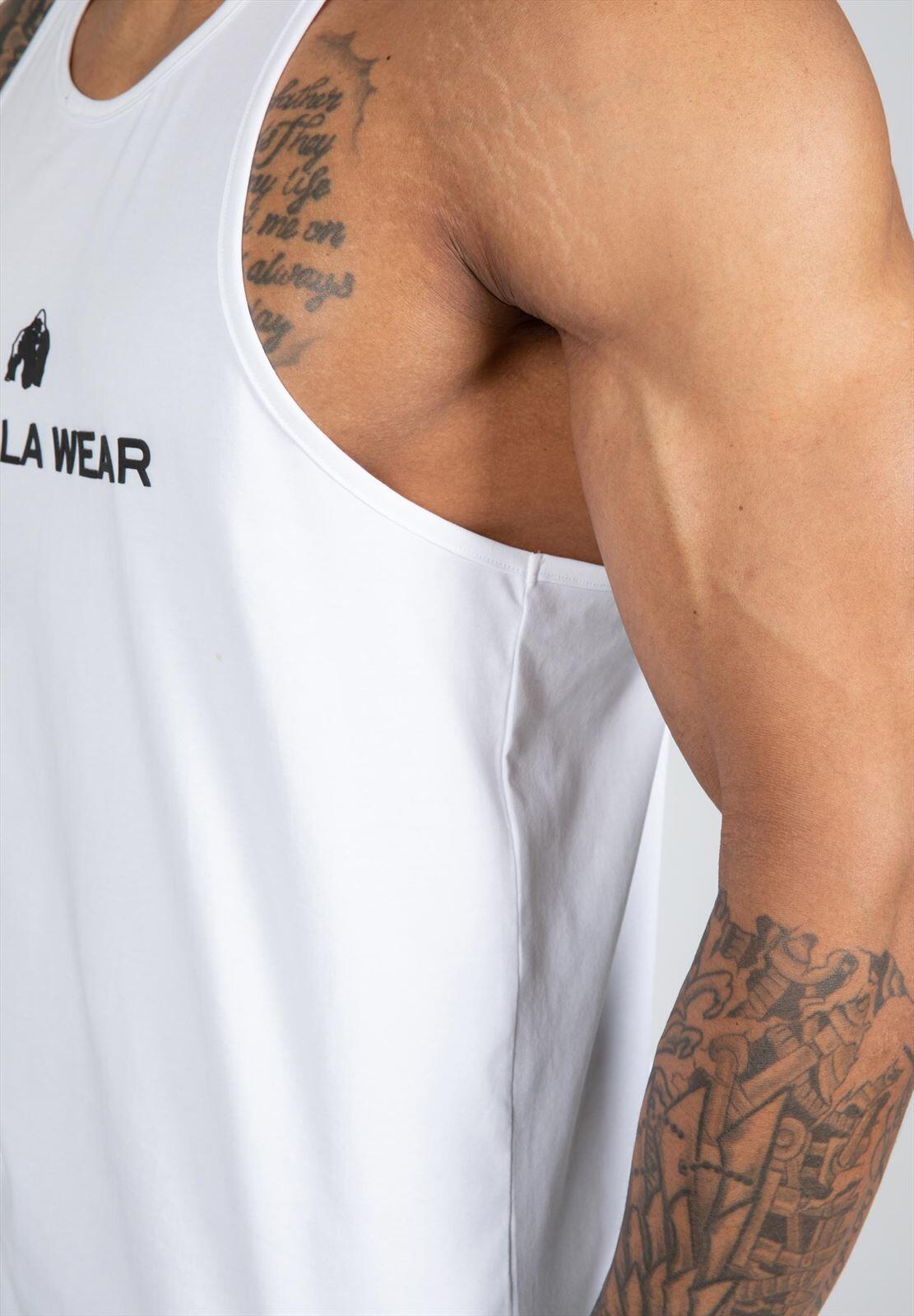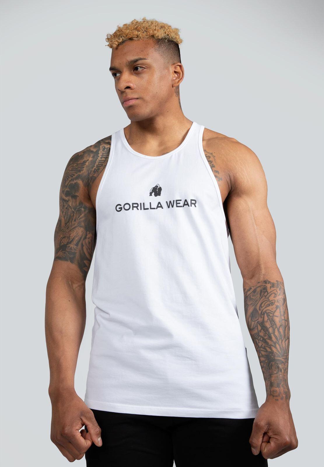 The stretch tank top Gorilla Wear Carter, perfect for workouts, with logo printed on the chest. Quality stretch fabrics.