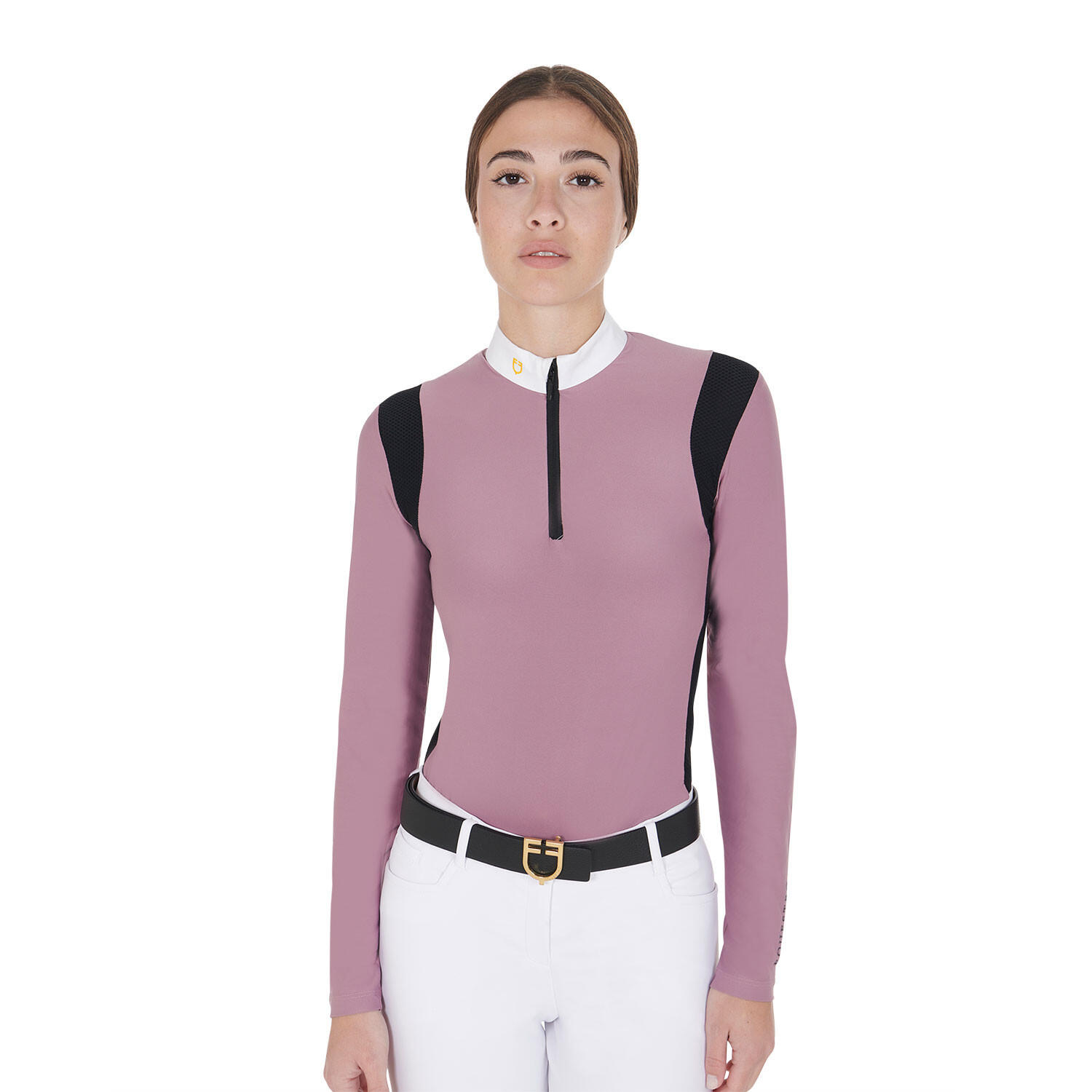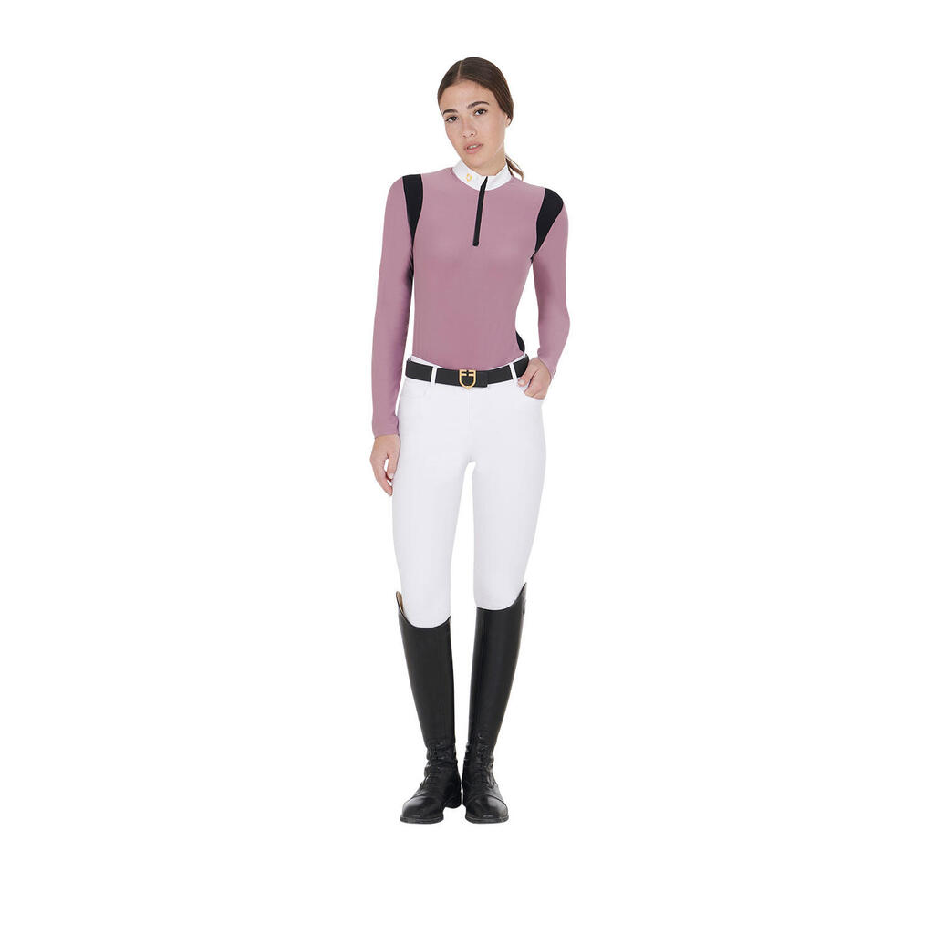 Modern design with iconic Equestro details, long sleeves, and contrasting inserts for a sophisticated style. Perfect to enhance the feminine silhouette at every competition.