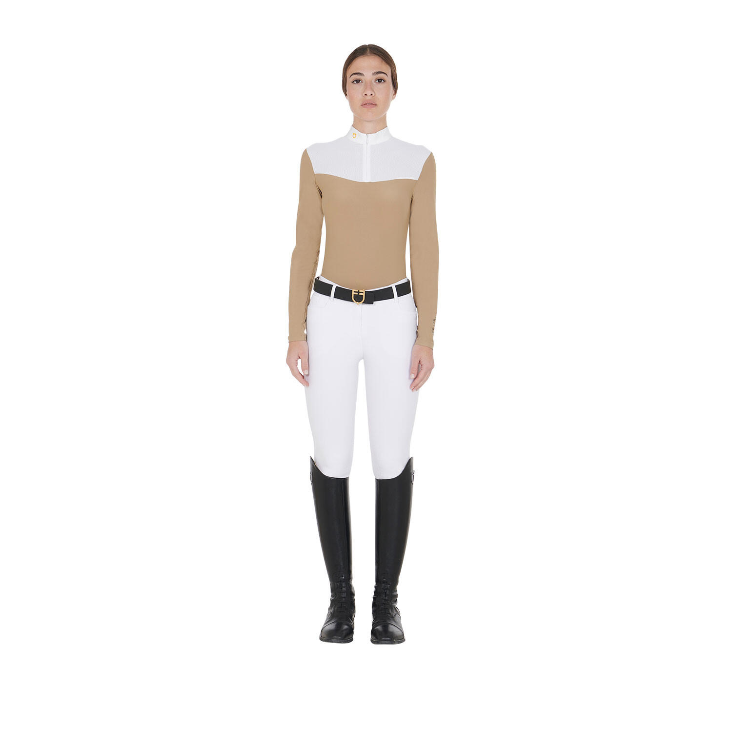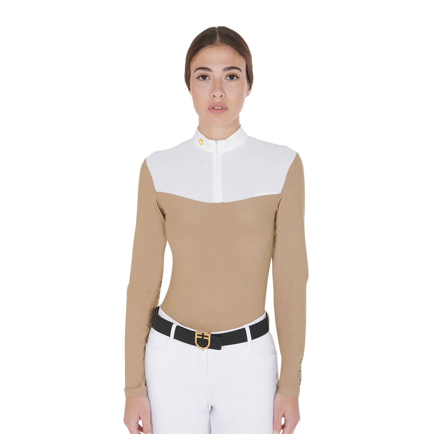 The polo, perfect for riding, enhances the female silhouette with its slim fit cut and ensures optimal comfort with breathable mesh and a practical front zip.