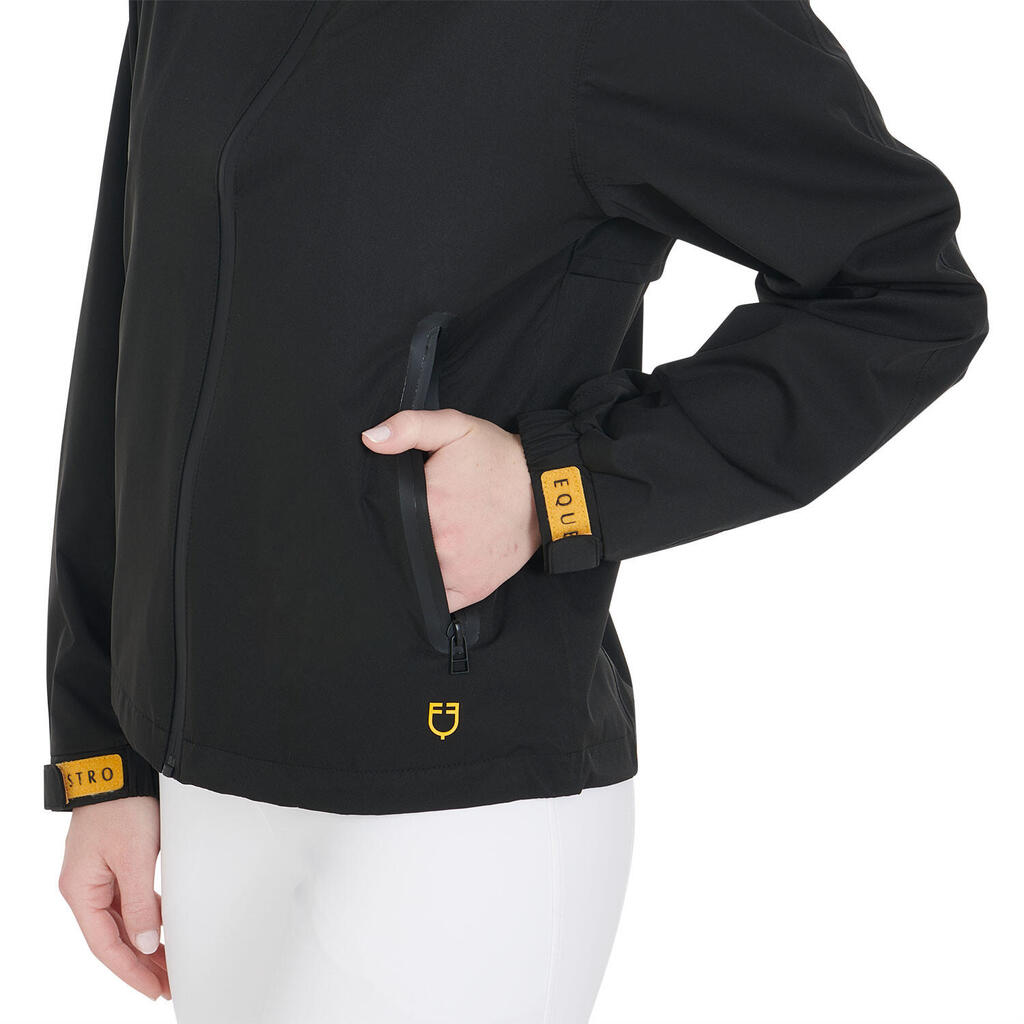 Thermo-taped seams and adjustable details ensure superior waterproofing and freedom of movement, ideal for sports and outdoor activities on rainy and windy days.