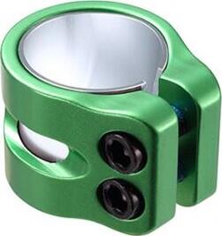 Discover the BLUNT CLAMP 2 BOLTS TWIN SLIT clamp in green. Sturdy and stylish, it ensures a secure grip on your scooter. Ideal for demanding riders.