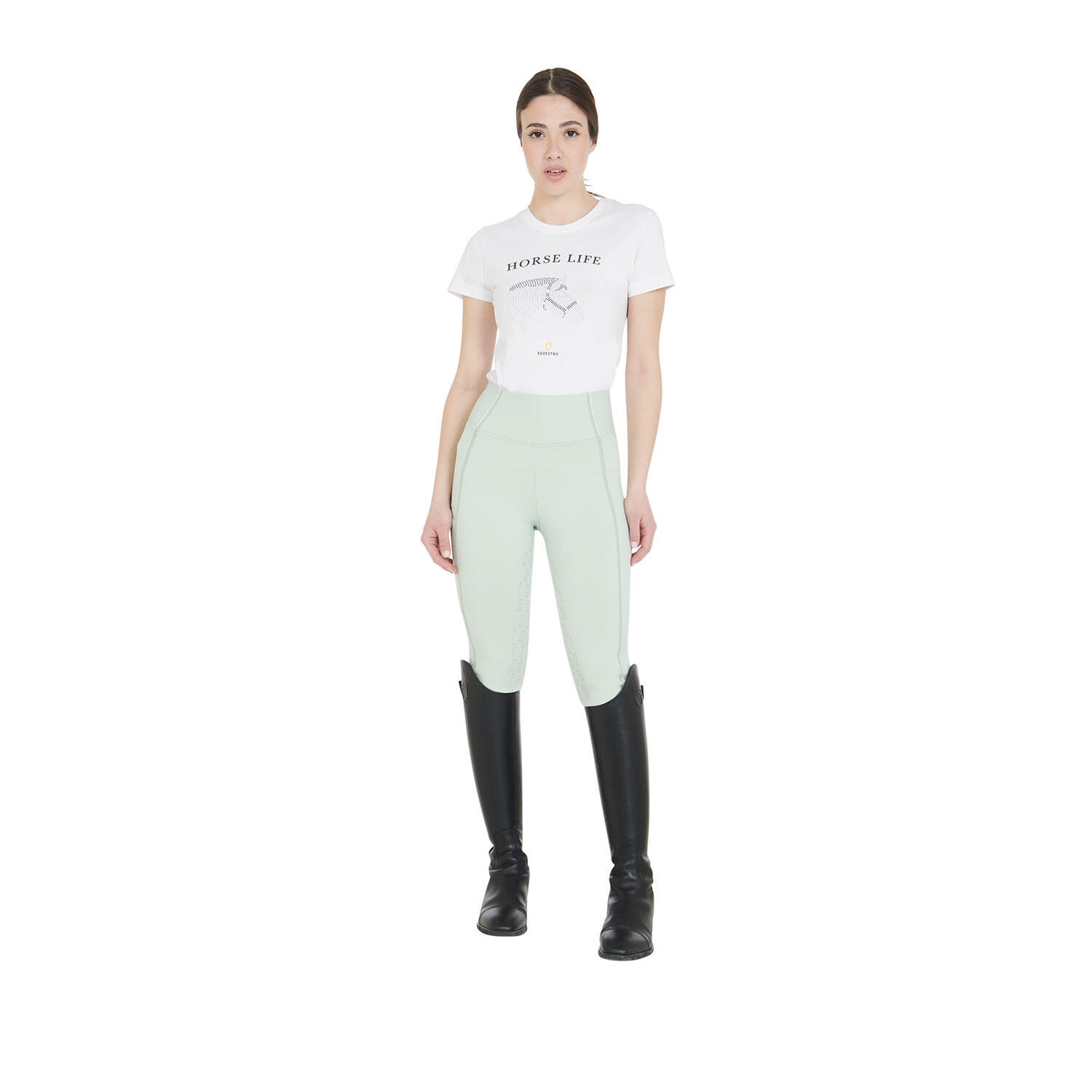 Slim fit women's leggings with a modern design, full silicone grip, side pockets, and high waistband for comfort and practicality during every workout session.