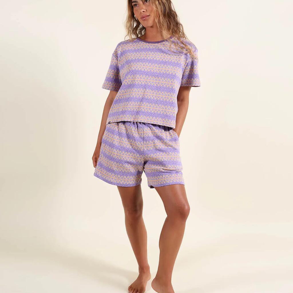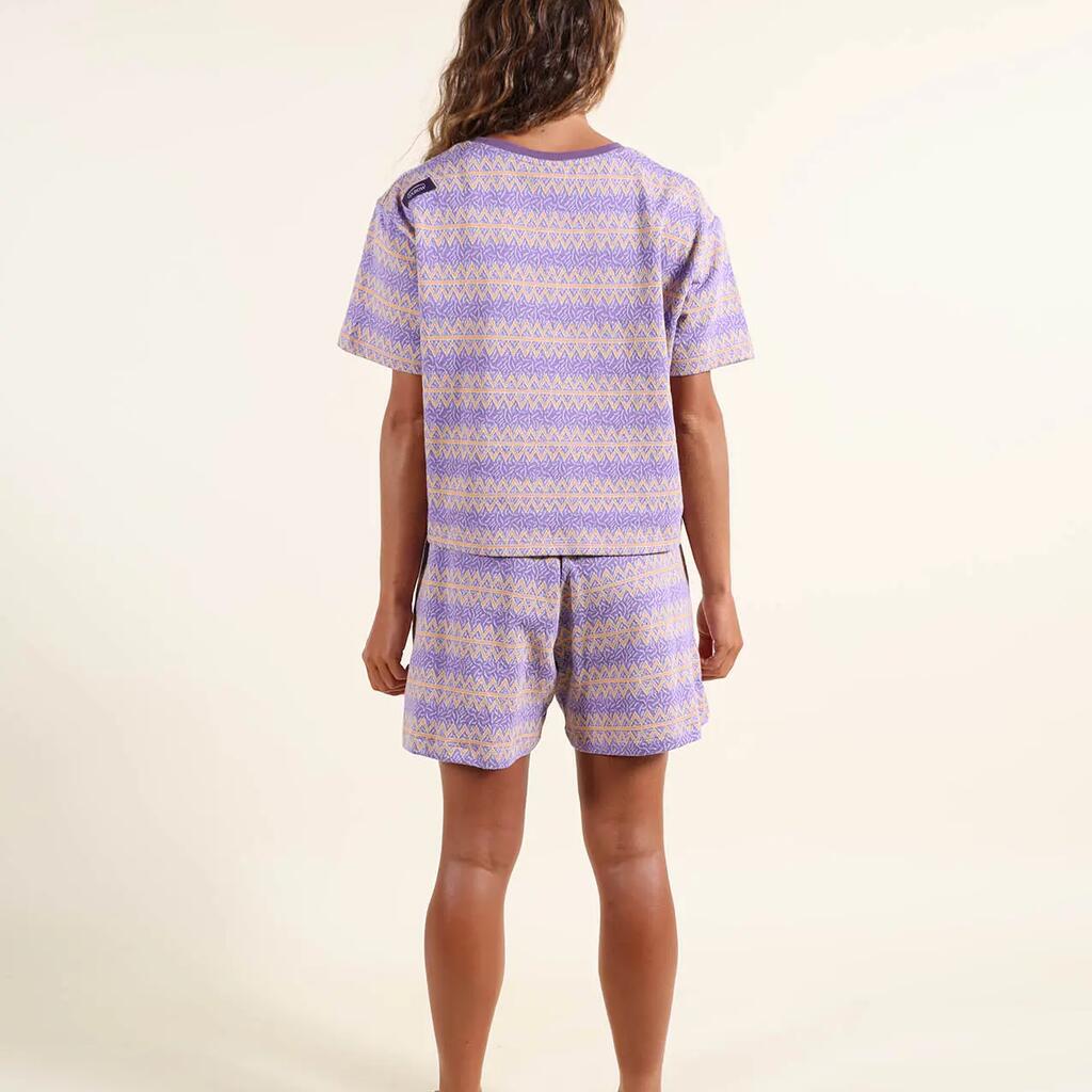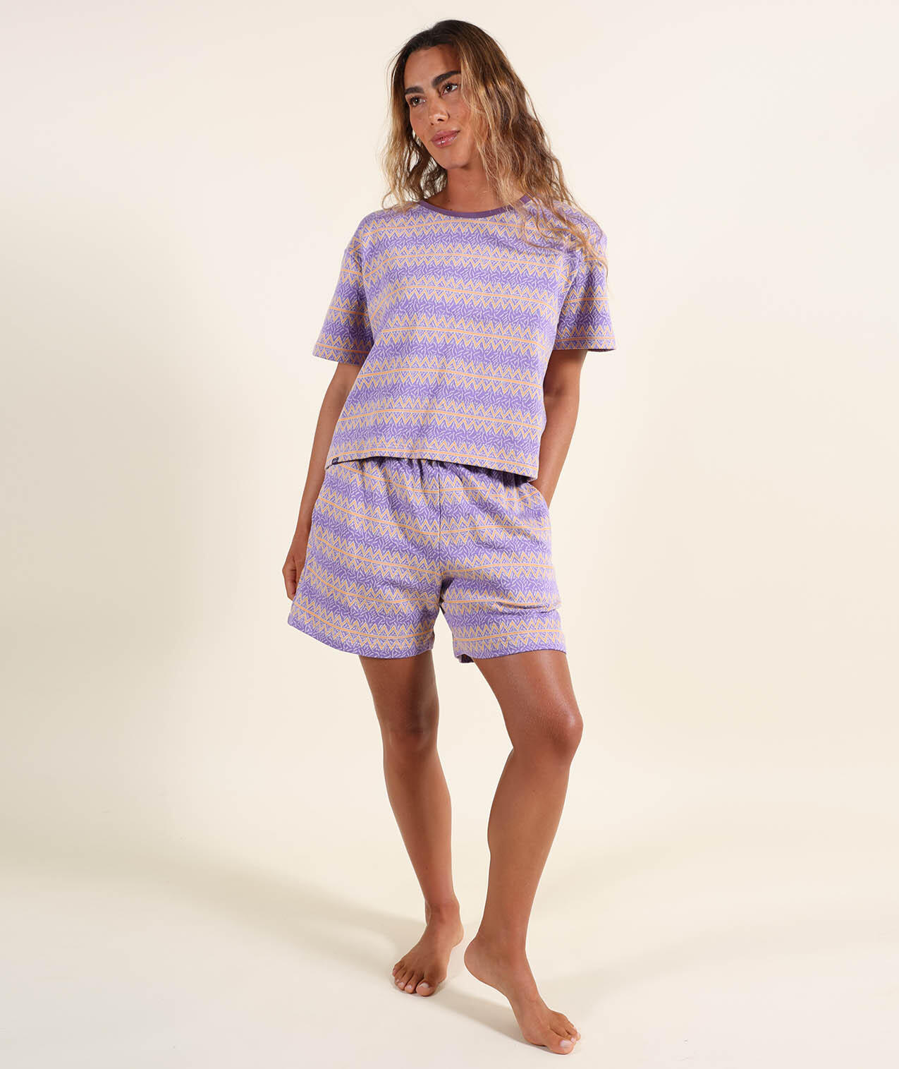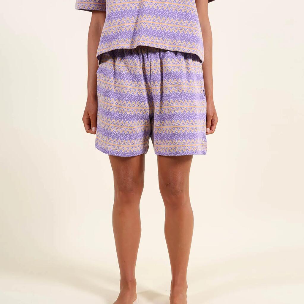 Cotton jacquard patterned shorts, vintage cut, elastic waistband, side pockets, Oxbow label on back and right leg.