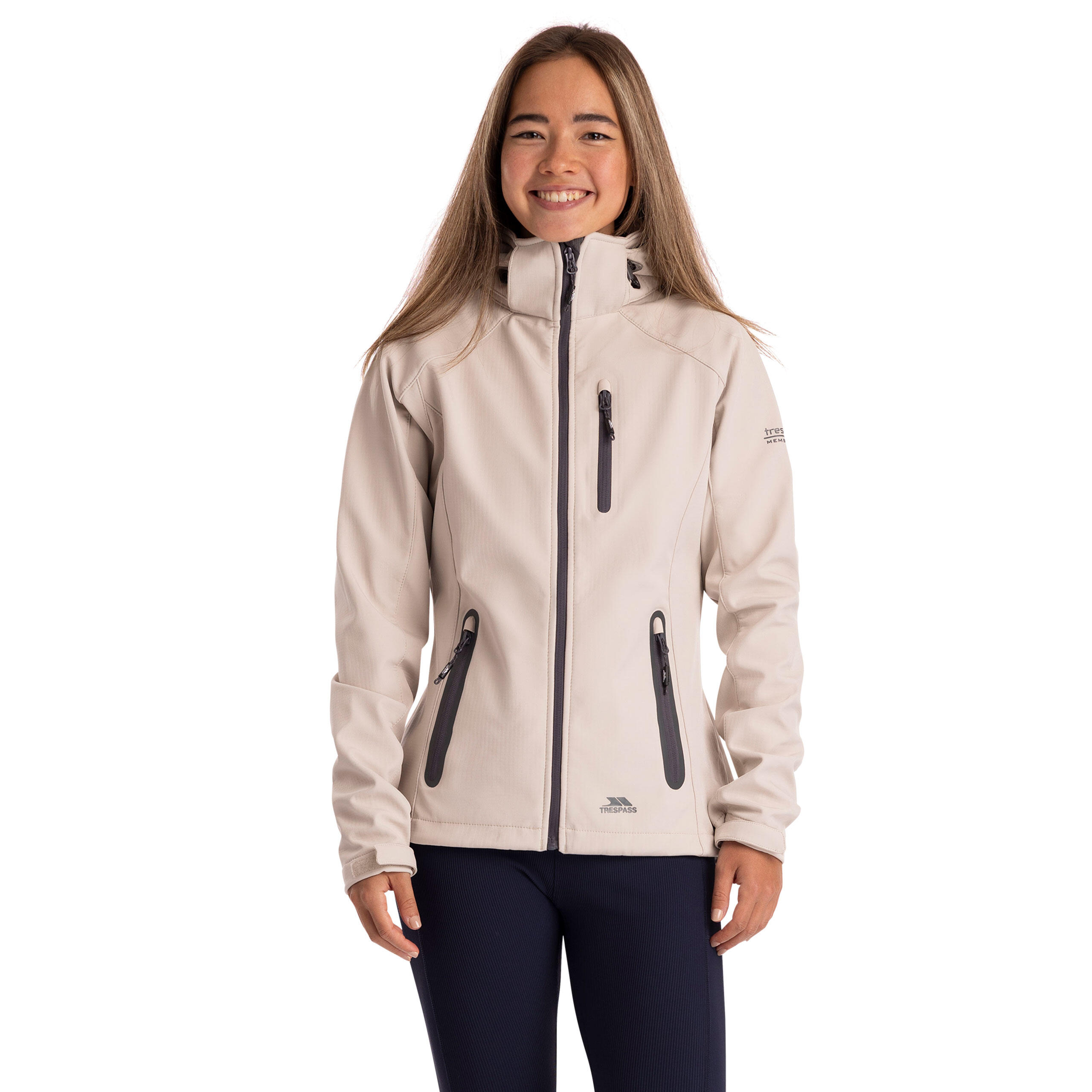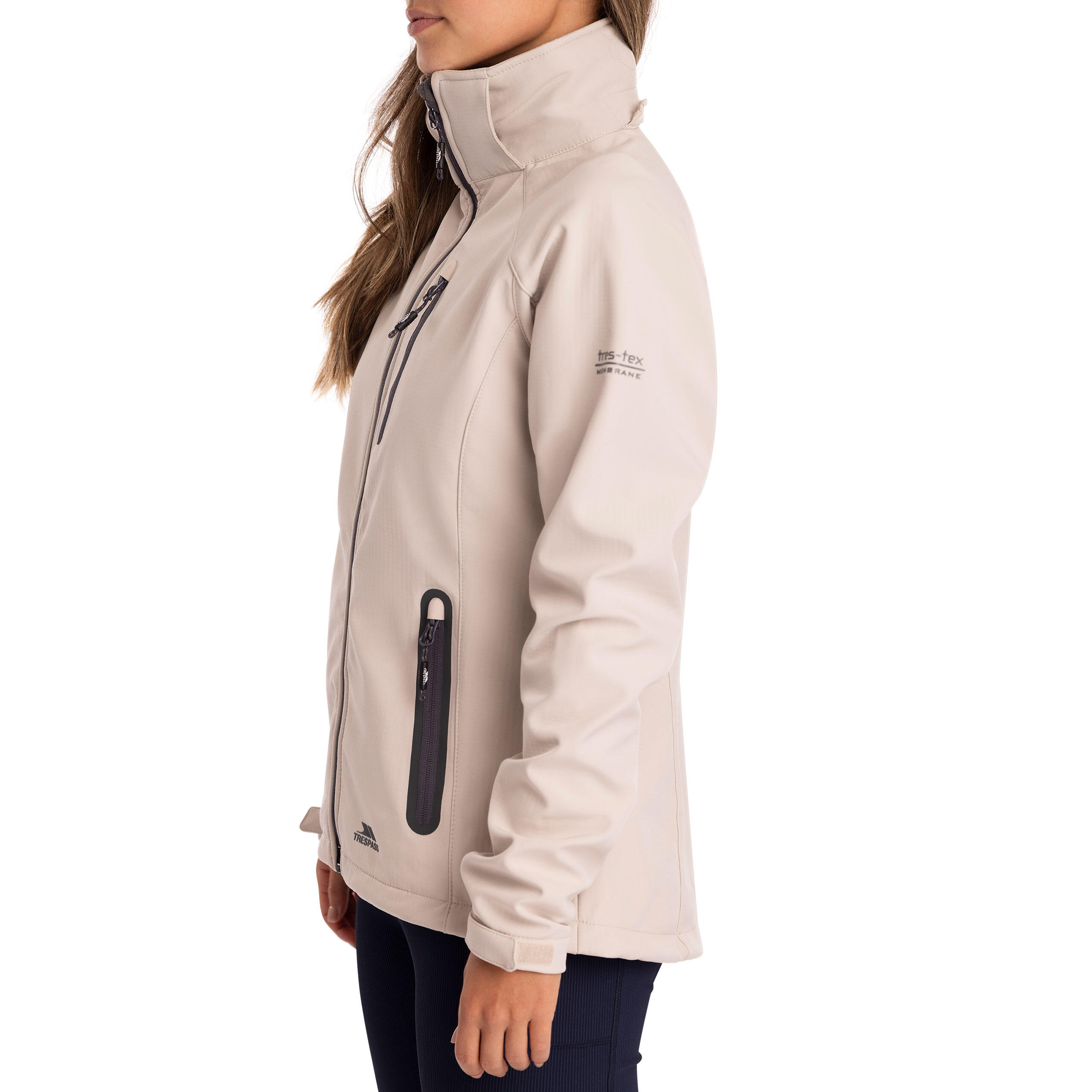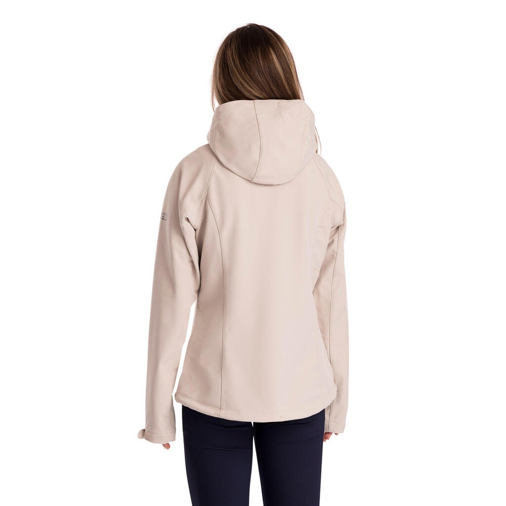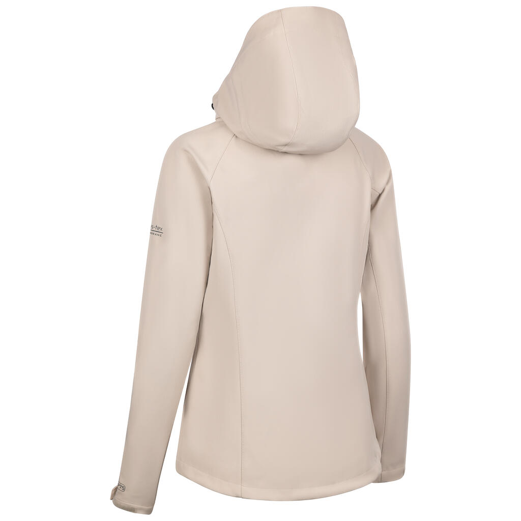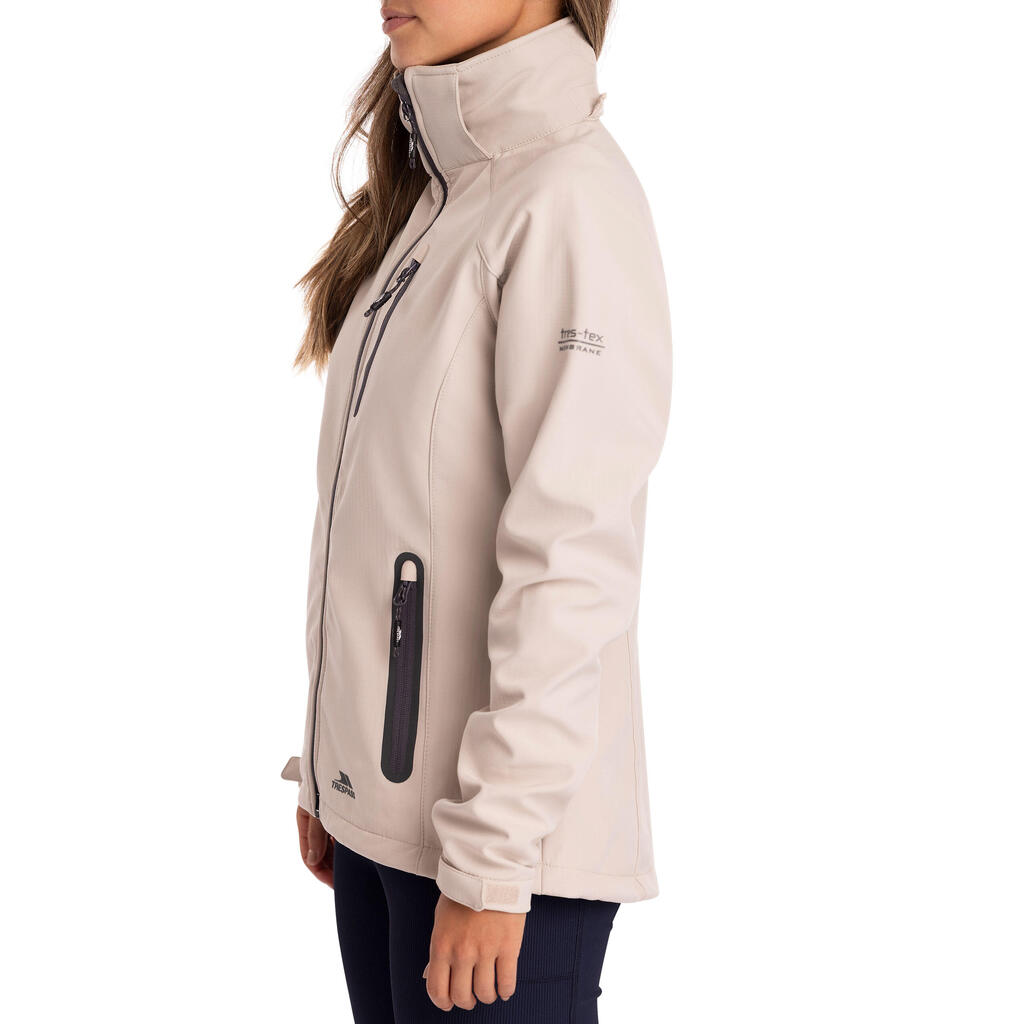 Stay dry, warm and protected in this women’s 8,000 mm waterproof, 3,000 mvp breathable, windproof softshell jacket with adjustable zip-off hood, 3 low profile zip pockets and contrast zips.