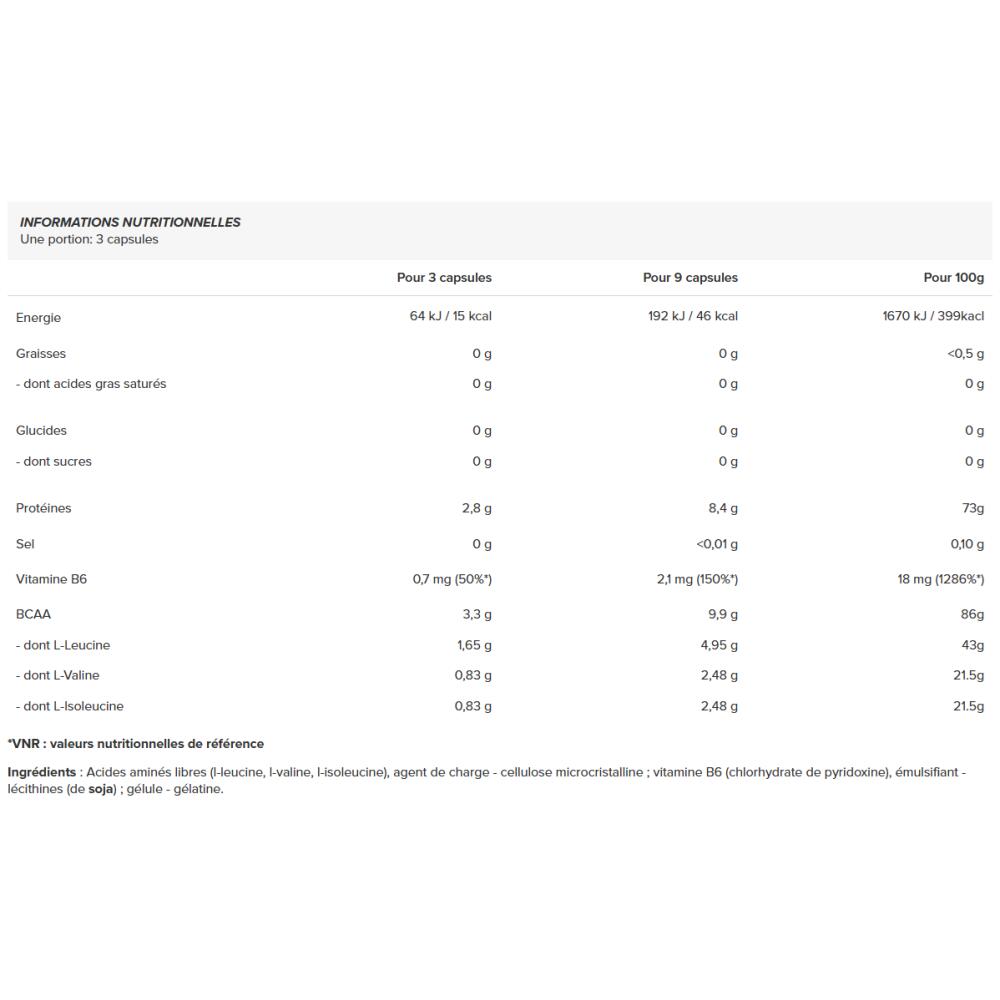 The brand's BCAA mega caps (120 caps) Olimp Sport Nutrition is a dietary supplement specifically designed for amateur and competitive athletes who want to increase their intake of branched-chain amino acids.These amino acids, Leucine, Valine and Isoleucine, are renowned among athletes for their benefits in terms of muscle mass gain and recovery. In fact, BCAA supplementation will help you build muscle and improve muscle recovery! The 2:1:1 ratio is ideal for covering your daily needs and supporting your goal.Olimp Sport Nutrition stands out for the quality of its raw materials and manufacturing process. The amino acids used in the formulation are of the highest quality and have been tested for the presence of heavy metals.What's more, vitamin B6 is combined with BCAAs for a guaranteed anti-fatigue effect!