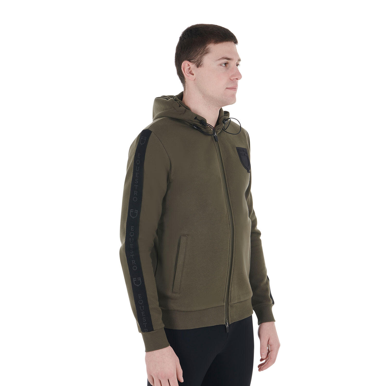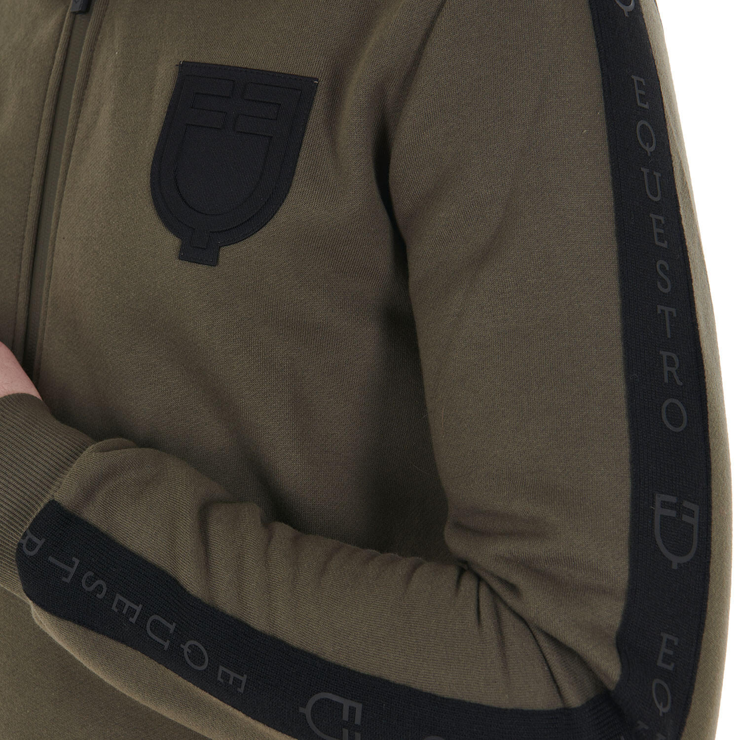 Embroidered logo and side stripes add a distinctive touch; full zip and zippered pockets make the sweatshirt versatile for any occasion, ideal on colder days.