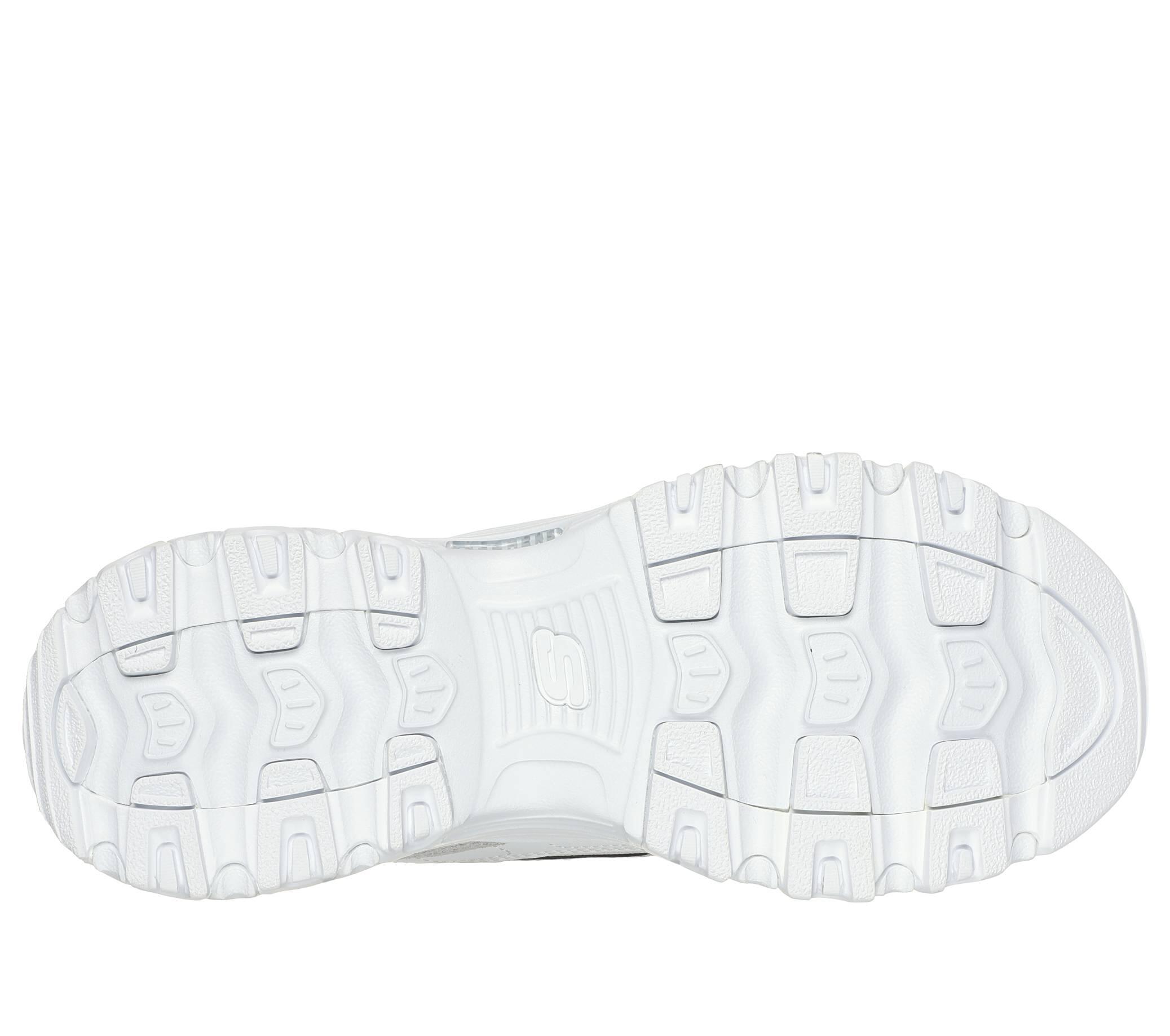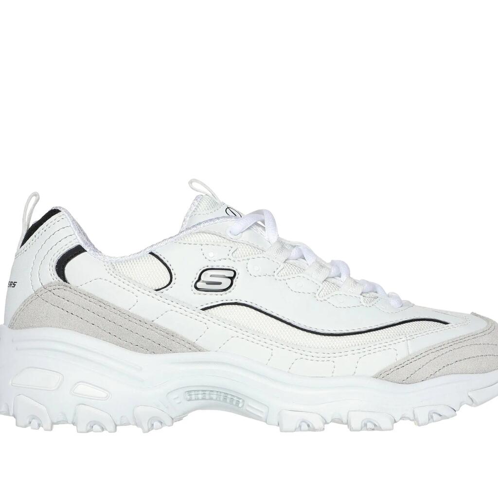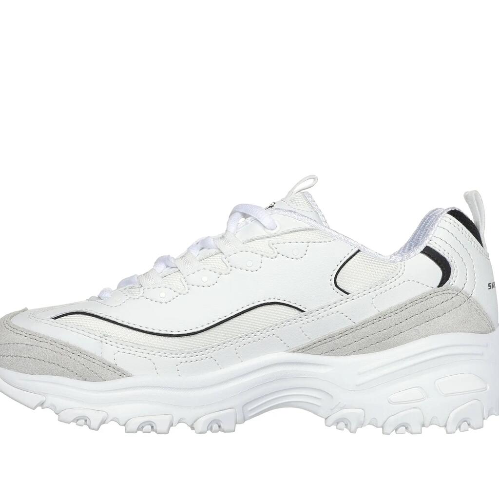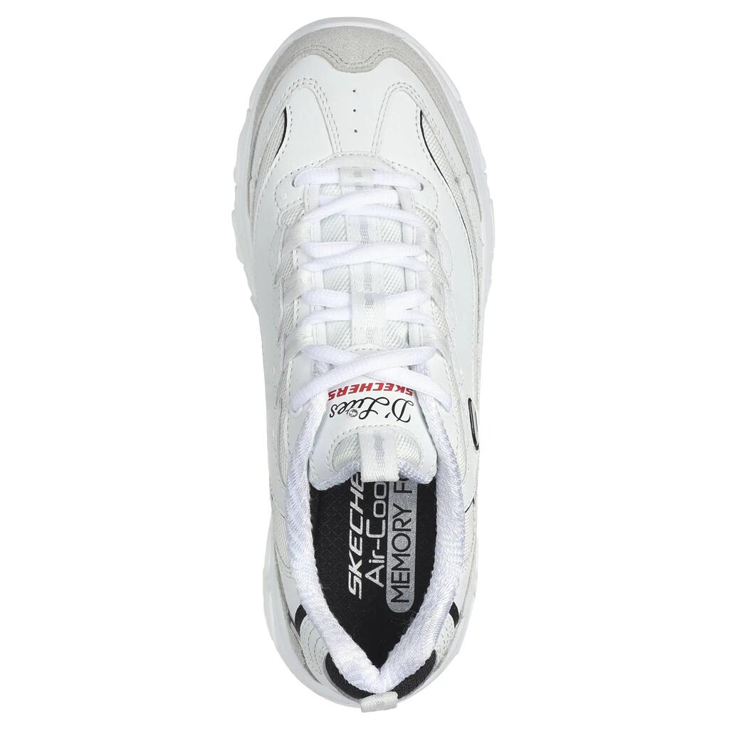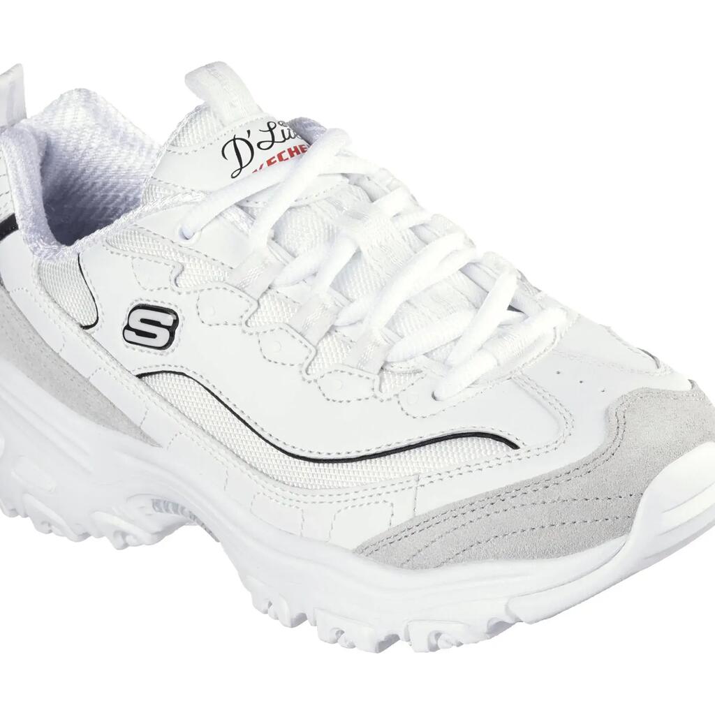 The SKECHERS D'LITES NEW HEAT: Lace-up sneakers with durable cowhide leather upper, rubber sole, and Air Cooled Memory Foam insole.