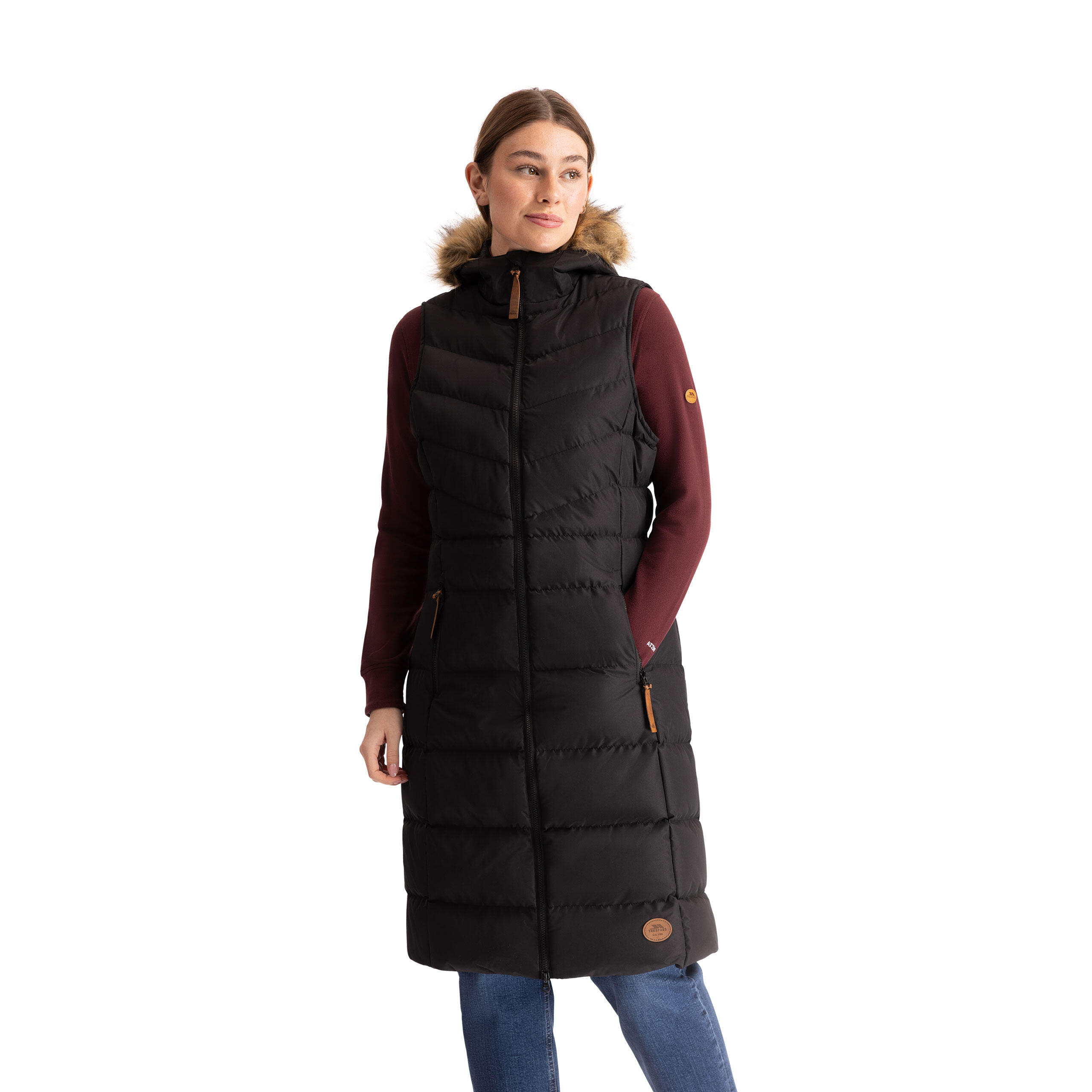 Stay warm, dry and stylish in this women’s 2,000 mm waterproof, windproof padded gilet with quilted design, grown-on adjustable hood, low profile front zip and 2 zipped lower pockets.