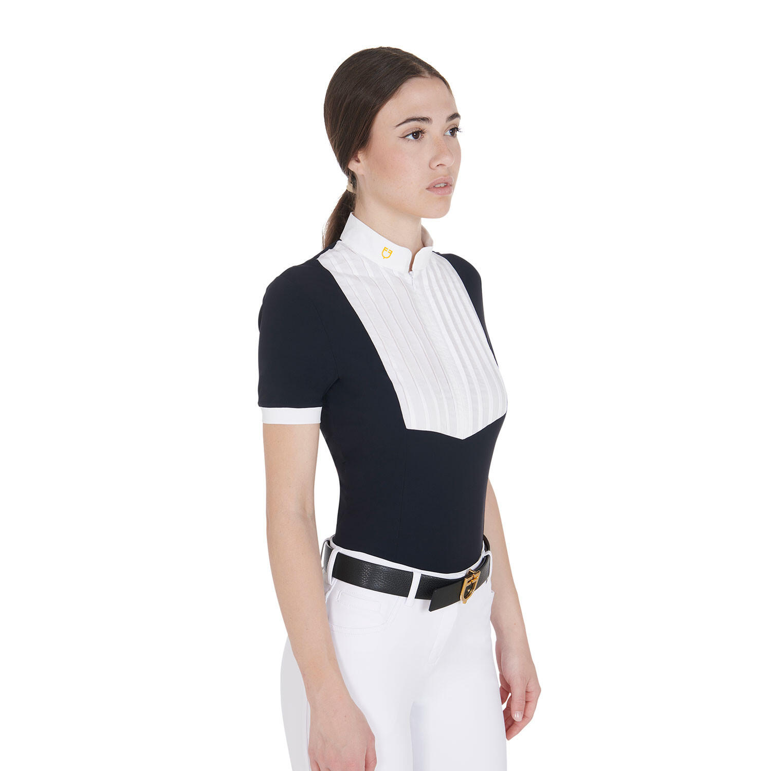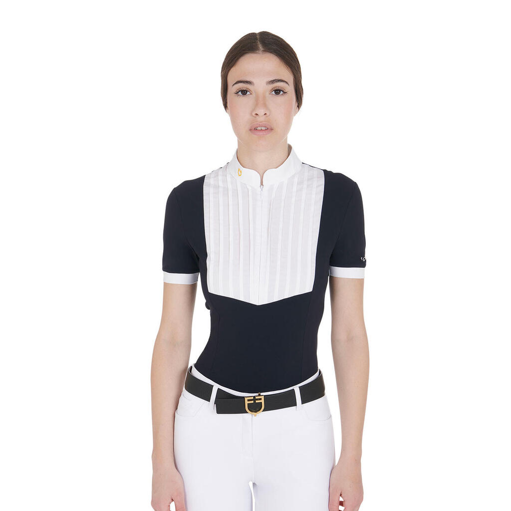 Slim fit pleated cotton polo shirt for women
