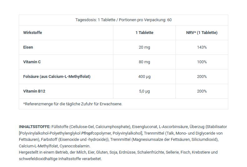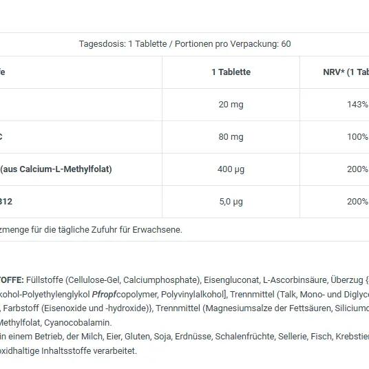 Iron gluconate with vitamin C to aid absorption, plus B12 and L-methylfolate — vegan formula, 60 tablets to support energy and blood health.