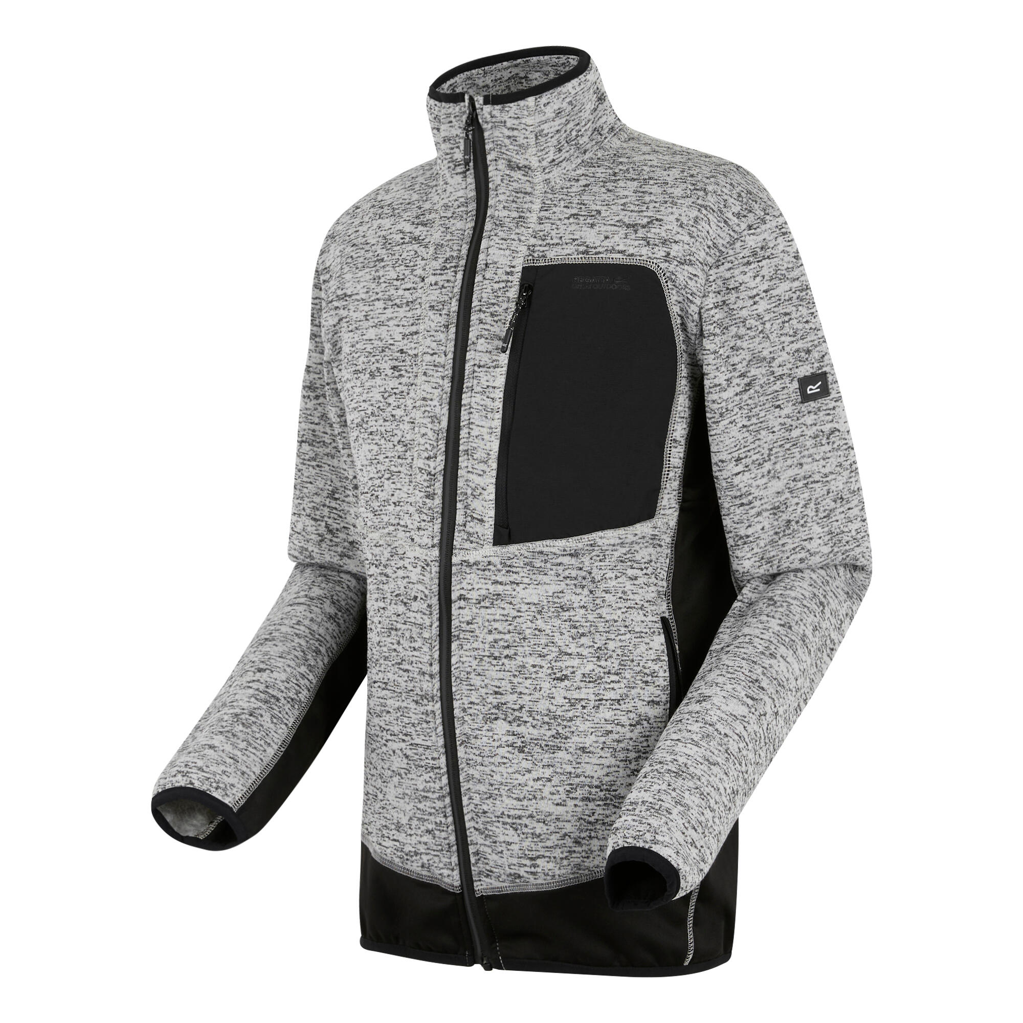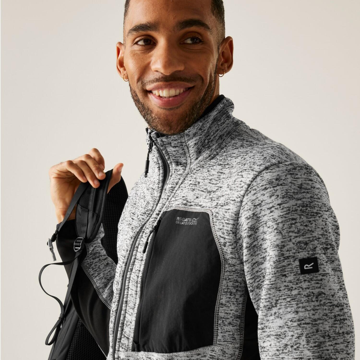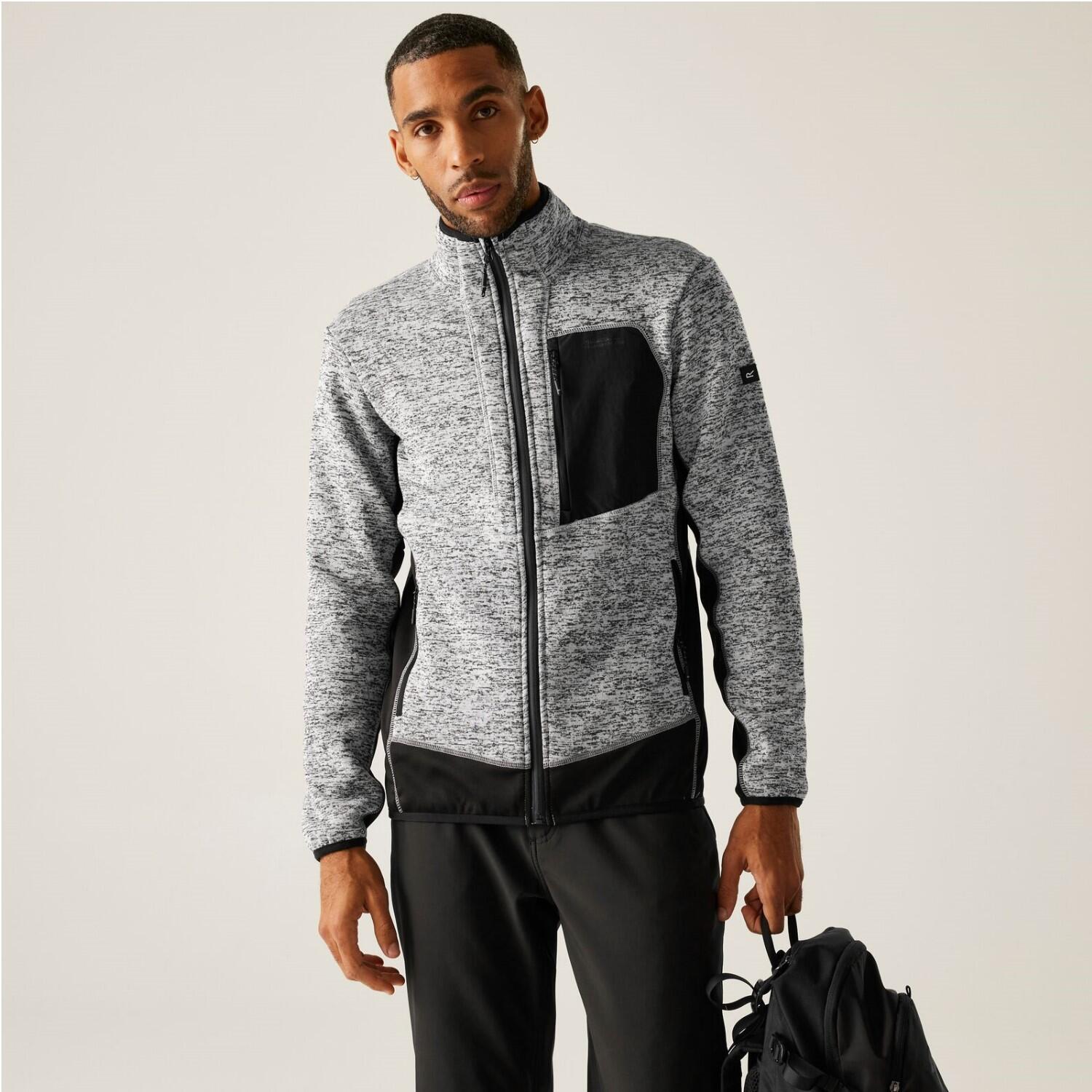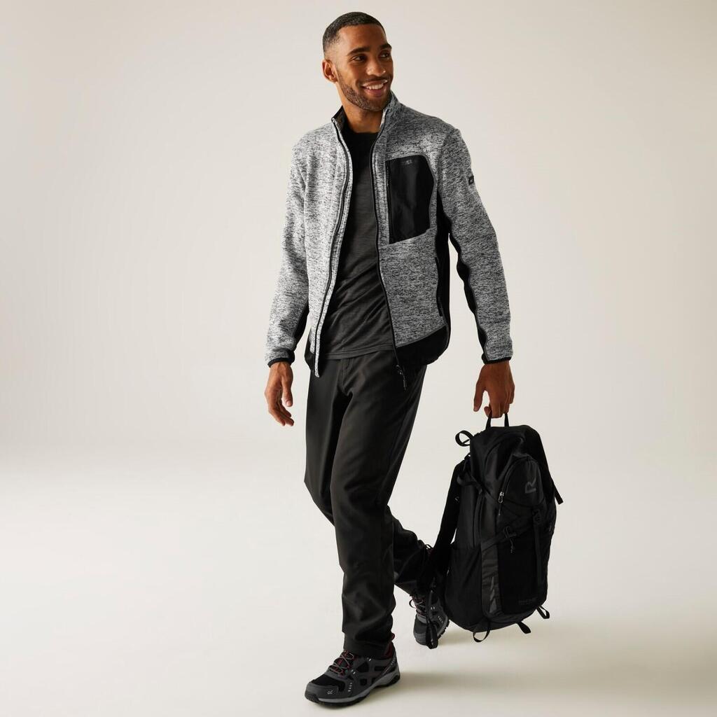 The Baslin men's fleece from Regatta provides warmth and flexibility for outdoor adventures. Marl knit-effect fabric adds style, while stretch panels and Reach Technology allow easy movement.