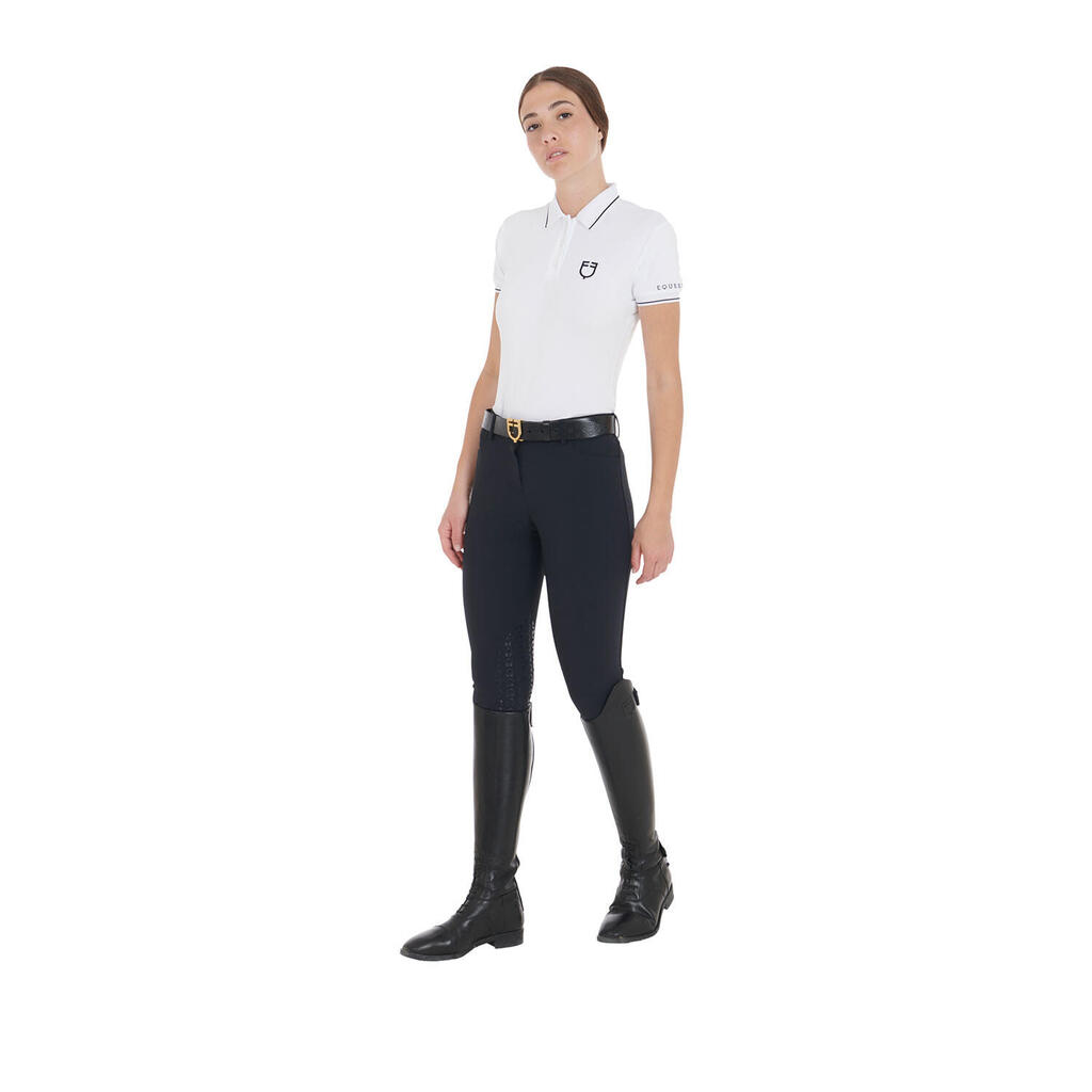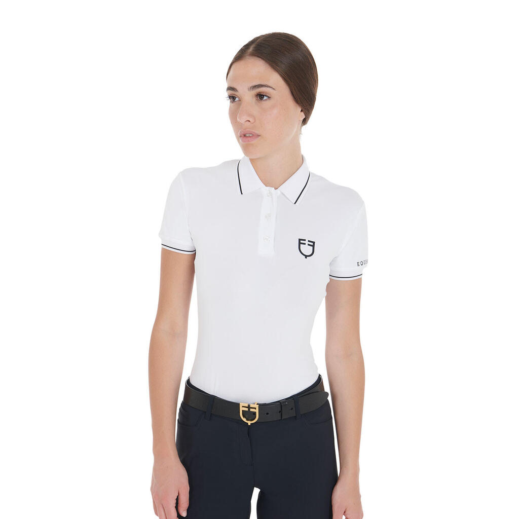 Ideal for training, provides comfort with micro-perforated fabric, dries quickly and protects against UV rays. Contrast finishes and Equestro logo add a distinctive touch.