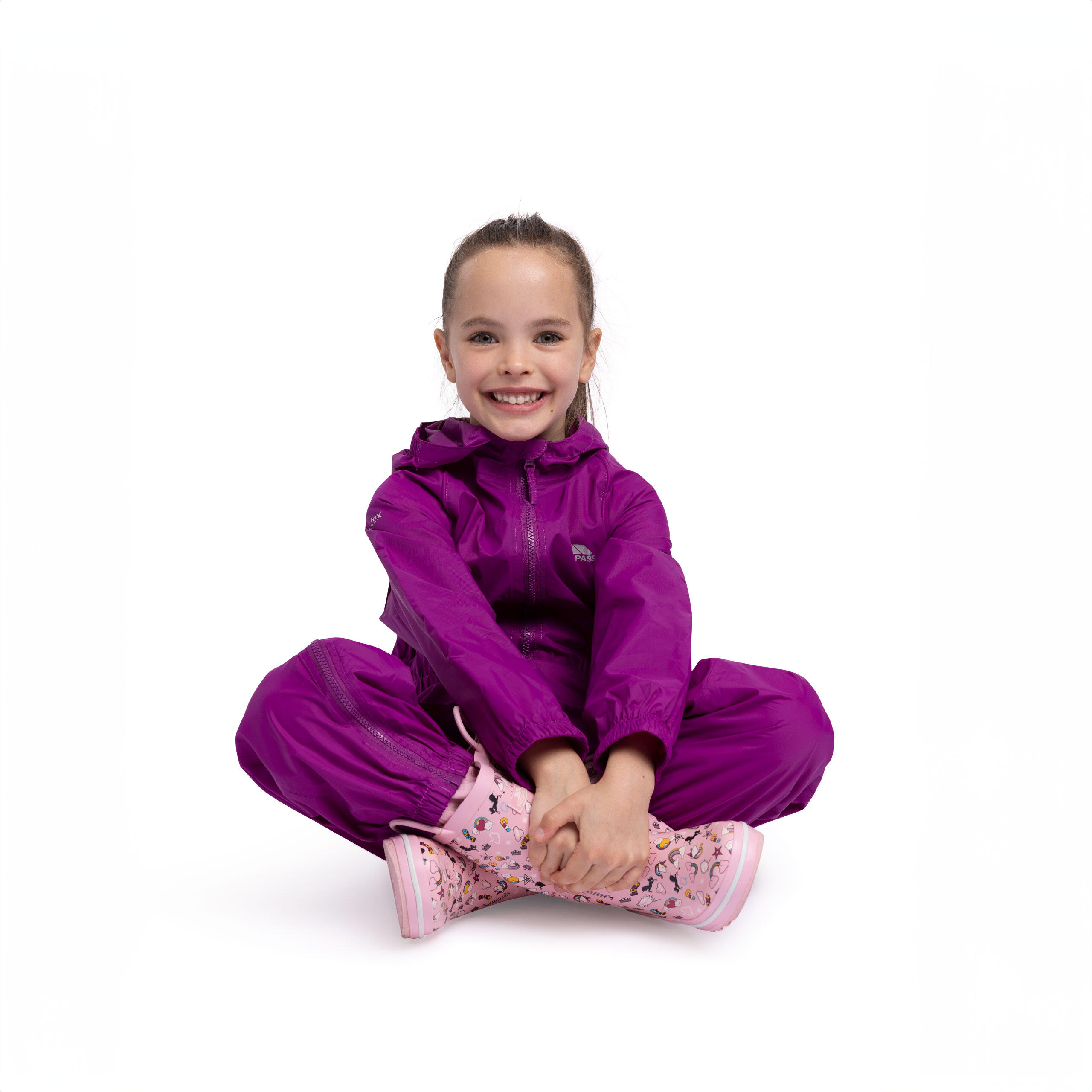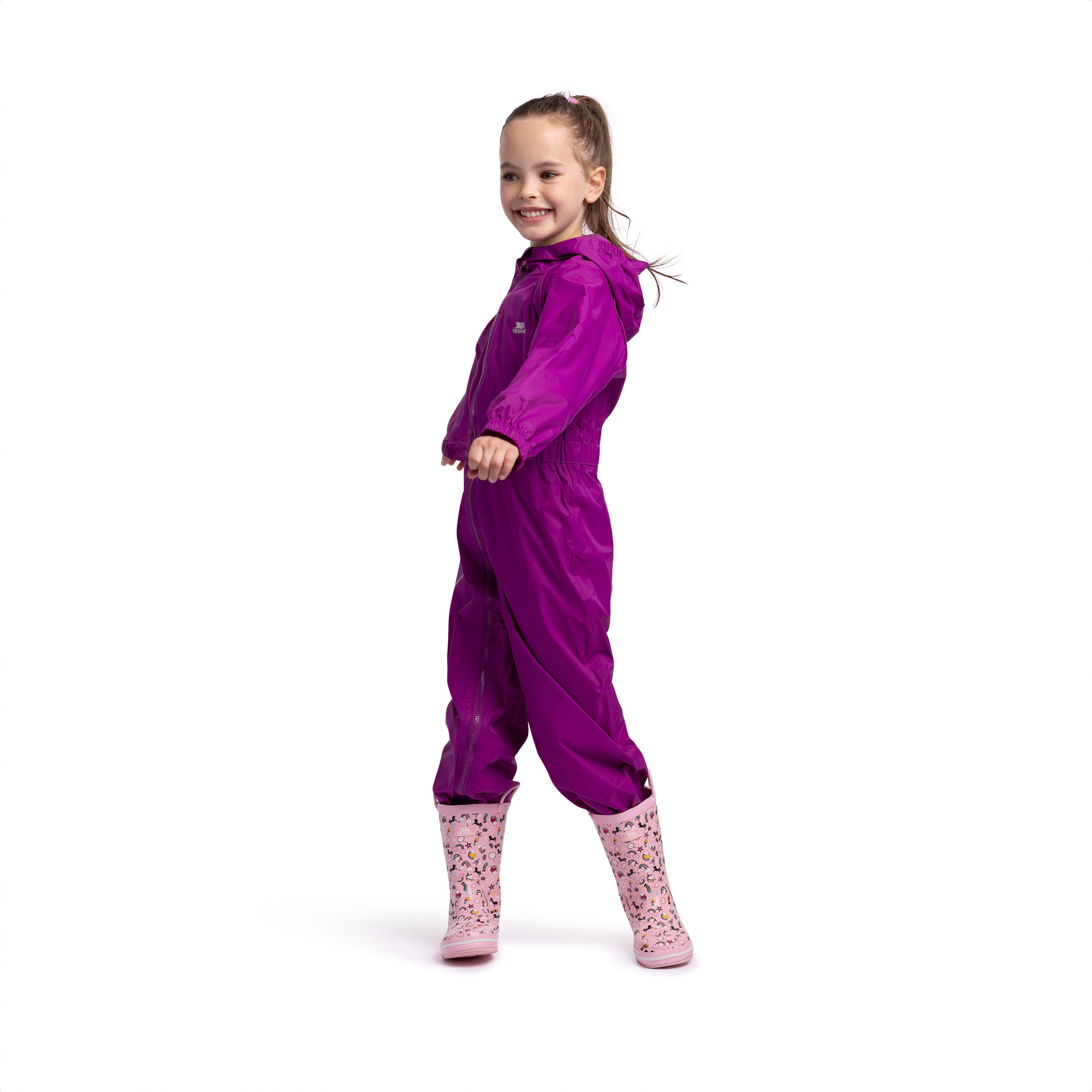 Keep kids dry, comfy and ready for puddles in this breathable full‑zip waterproof rain suit with fun, gender‑neutral design, perfect for rainy‑day adventures.