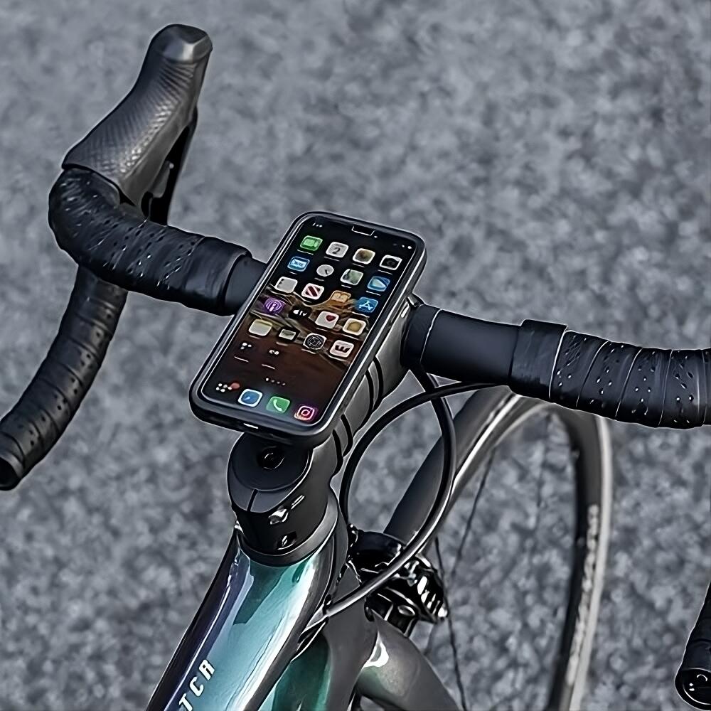 The best smartphone mount for your bike and mountain bike.The Quad Lock bike mount is the lightest and strongest mount on the market. The kit contains everything you need to secure your iPhone to your bike. Thanks to the patented Quad Lock double locking mechanism, your Quad Lock mount secures your iPhone on your bike, mountain bike or motorcycle. The mount can be assembled in seconds using the O-rings (included), or for permanent installation, the mount can be secured using cable ties (included).What's included:1 Quad Lock Pro bike mountFixing supplies (cable ties and O-rings)Features:Compatible with universal adapter and Quad Lock shells