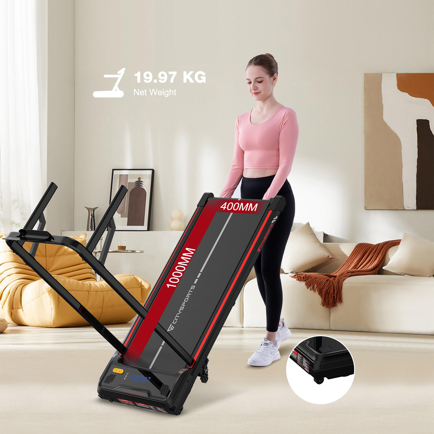 CITYSPORTS 440W Motor / Adjustable Incline 13.41% / Treadmill Dimensions 1208 × 480 × 1080 mm / Maximum Load 120 kg / Net/Gross Weight: 19.97/23 kg. Bluetooth