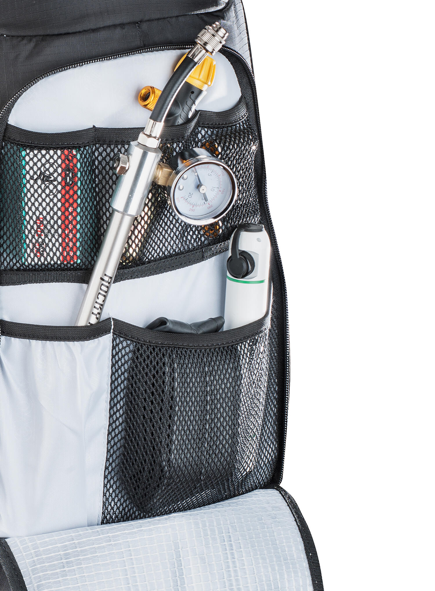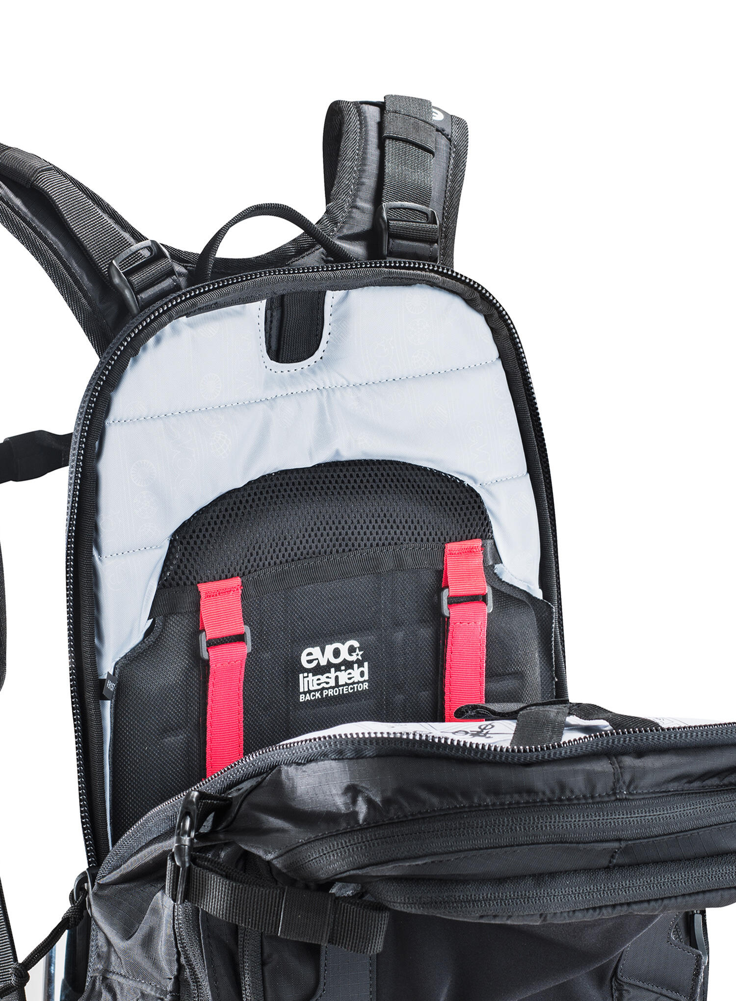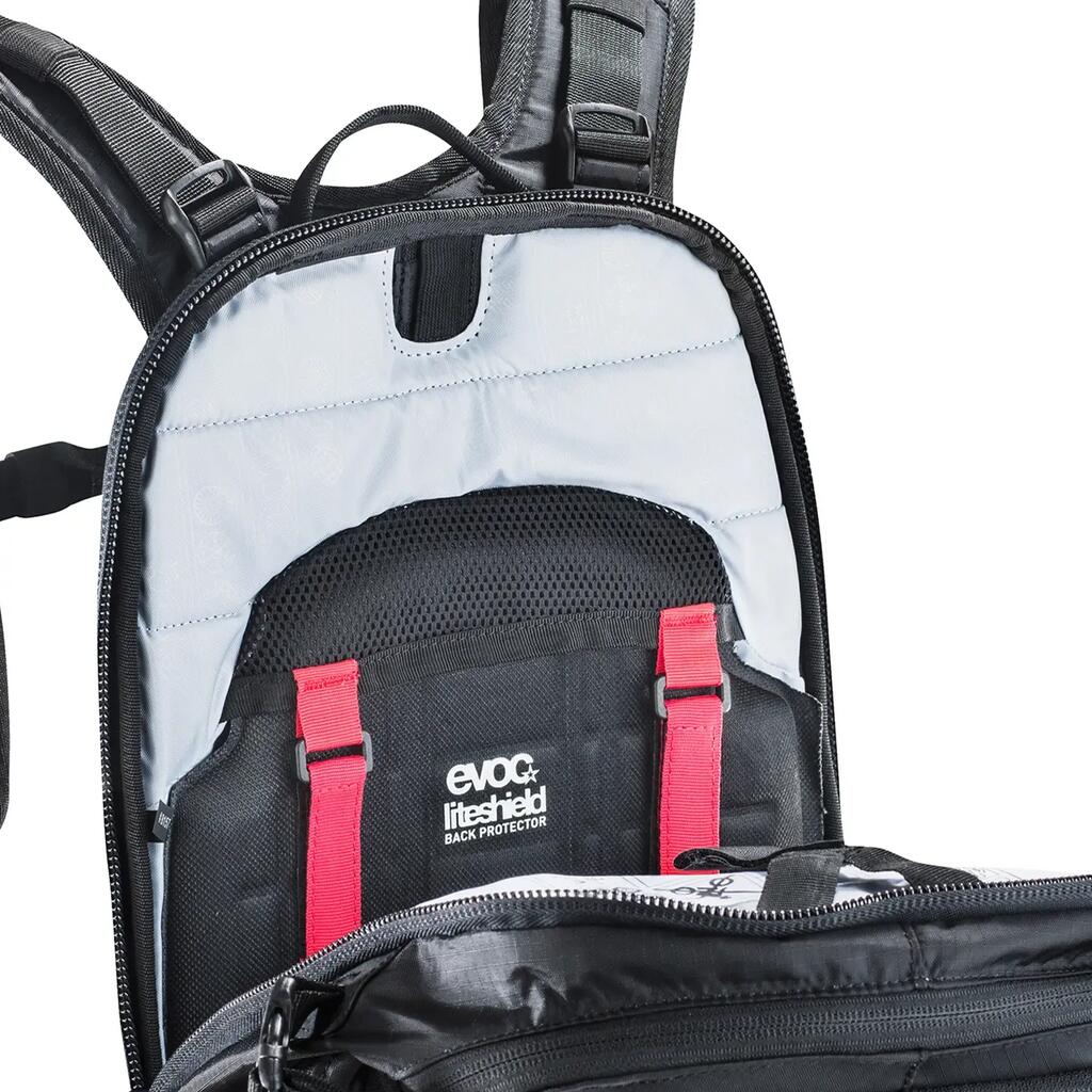 Discover the backpack Evoc FR Trail Blackline, combining comfort and performance for your mountain biking adventures.