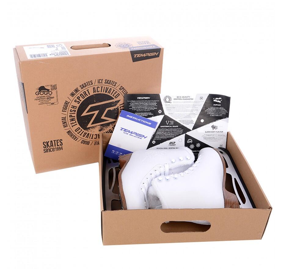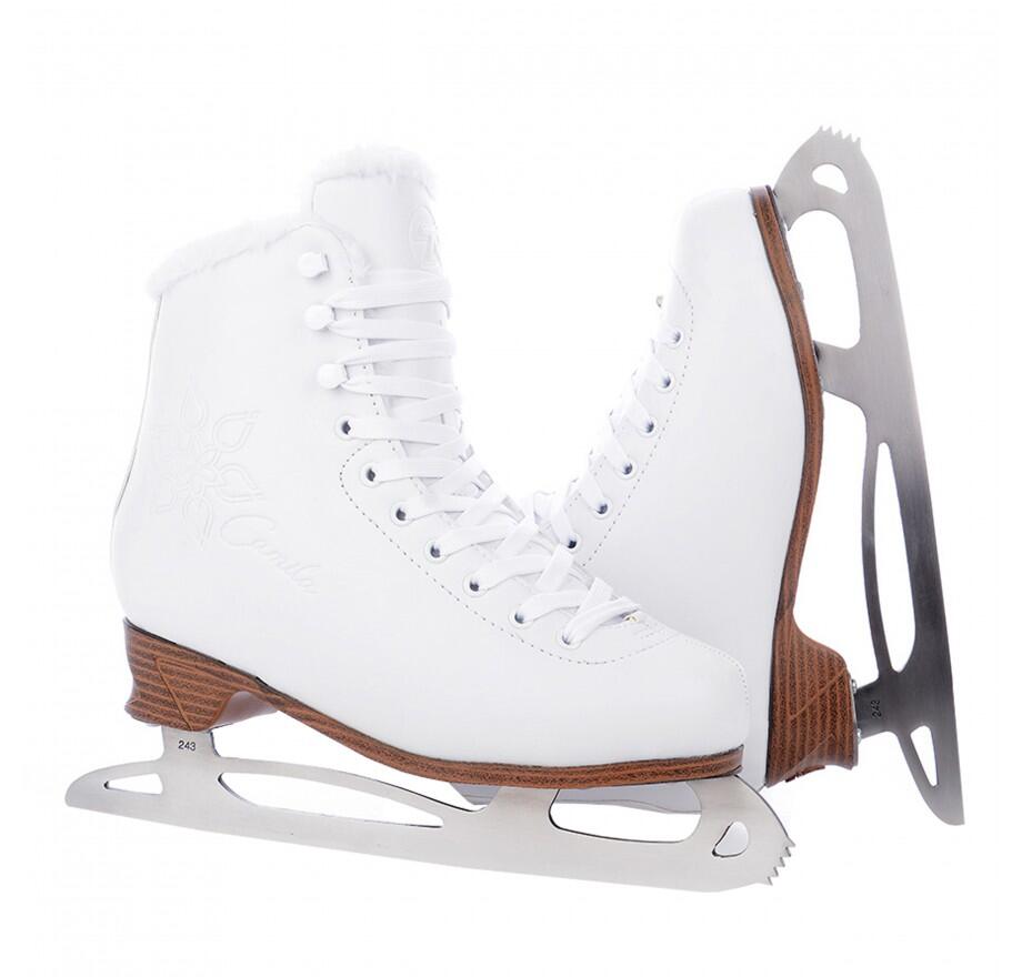 Elegant lightweight figure skate with anatomical ankle and super soft fur for comfort on the ice.”