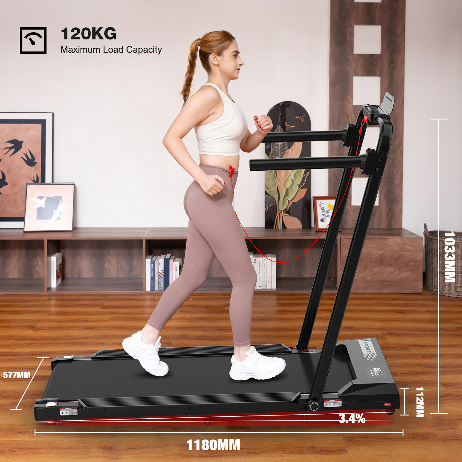 Folding and Incline Treadmill (3.4% incline), 1400W, ZX8S, 8 km/h