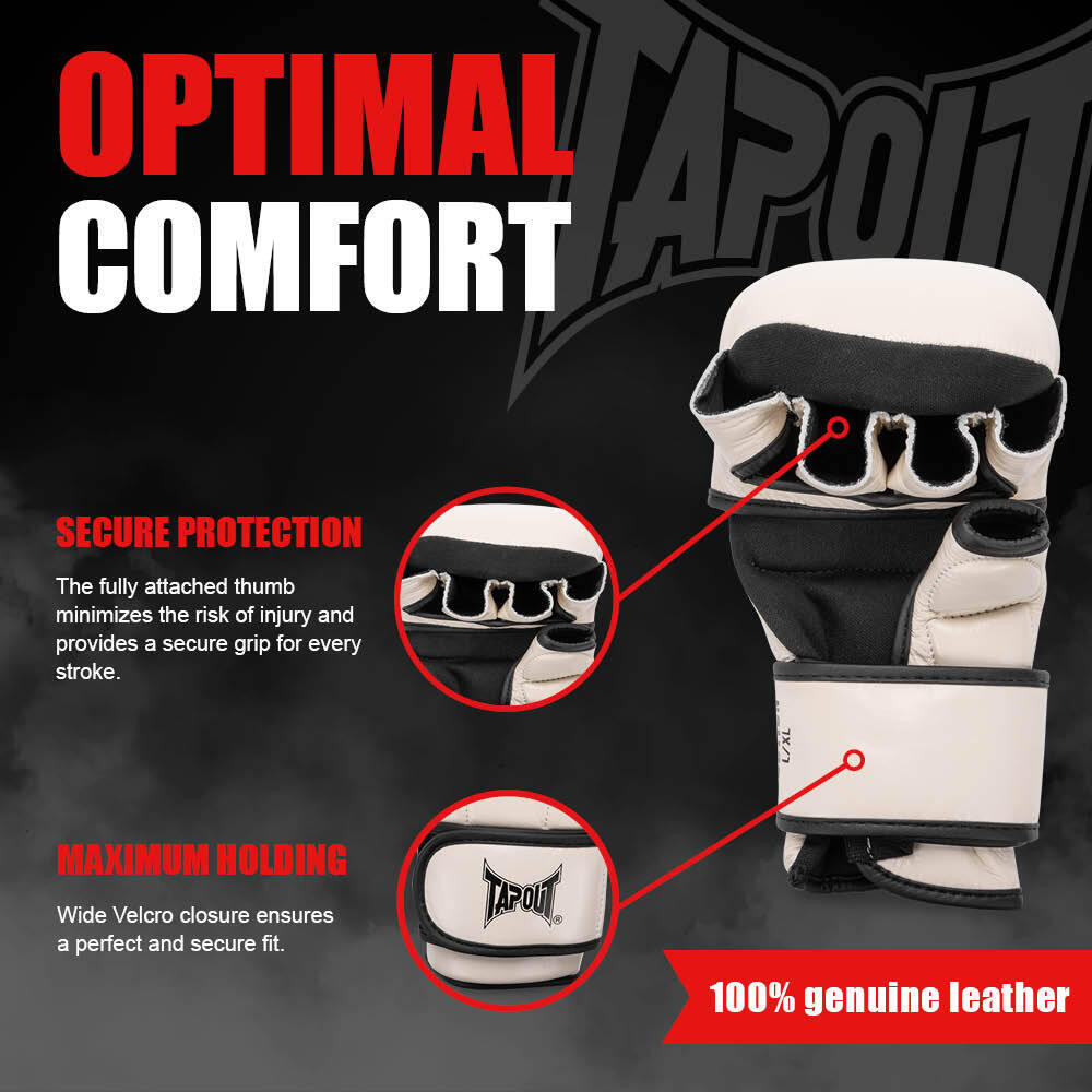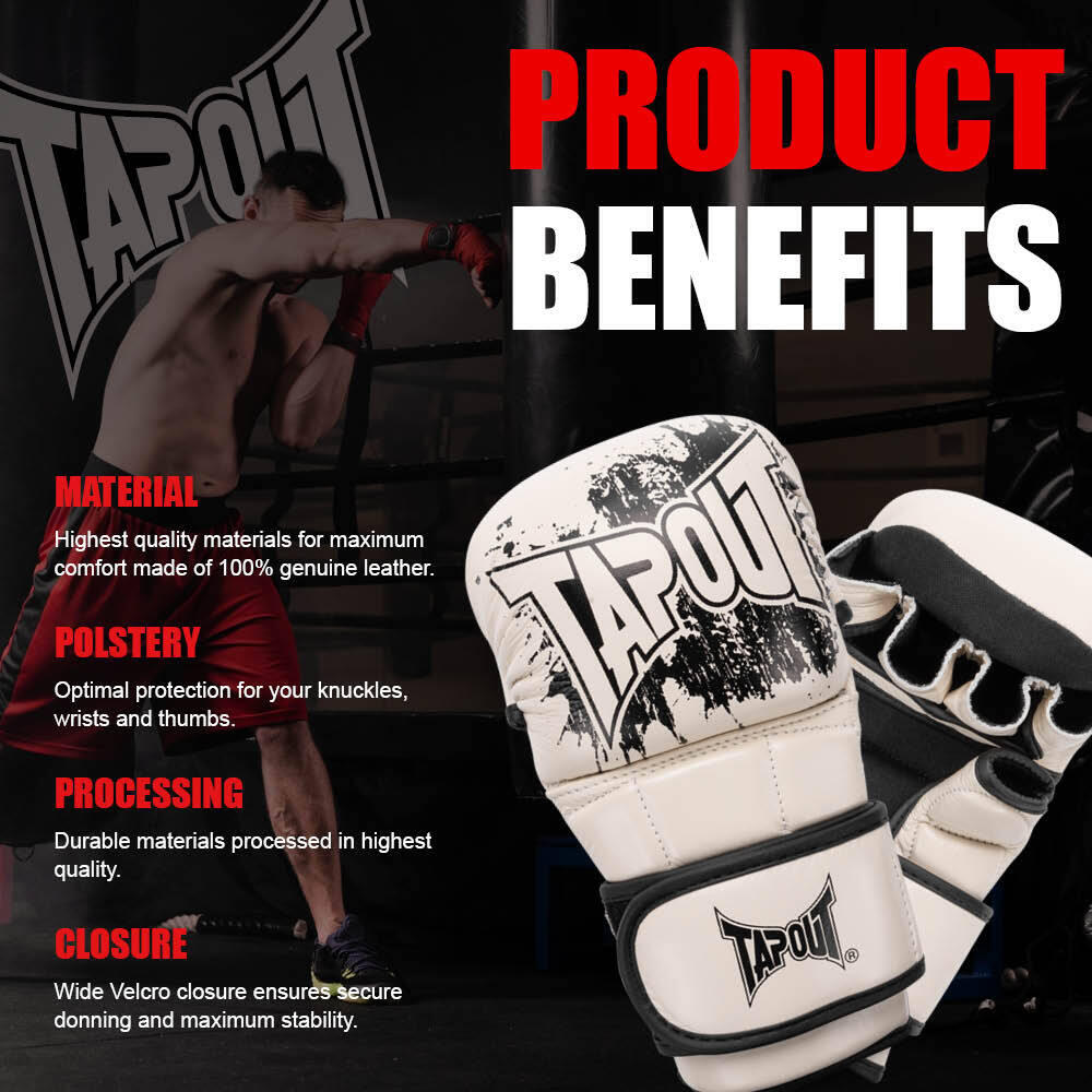 Enhance your MMA performance with the leather gloves Tapout Ruction. A comprehensive model for intense training.