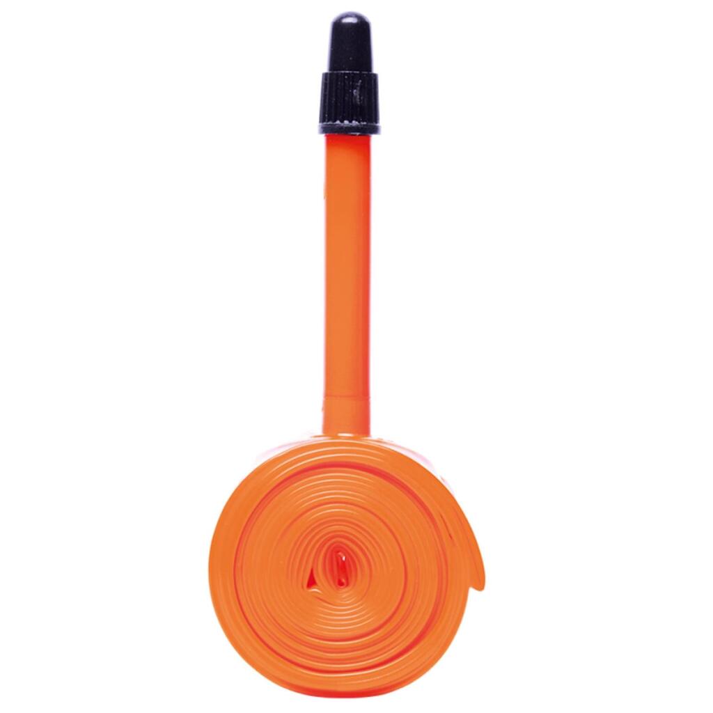Ultralight CX/Gravel inner tube (35g) made of thermoplastic, 42mm valve. Bright orange, compact, and highly puncture-resistant for various terrains.