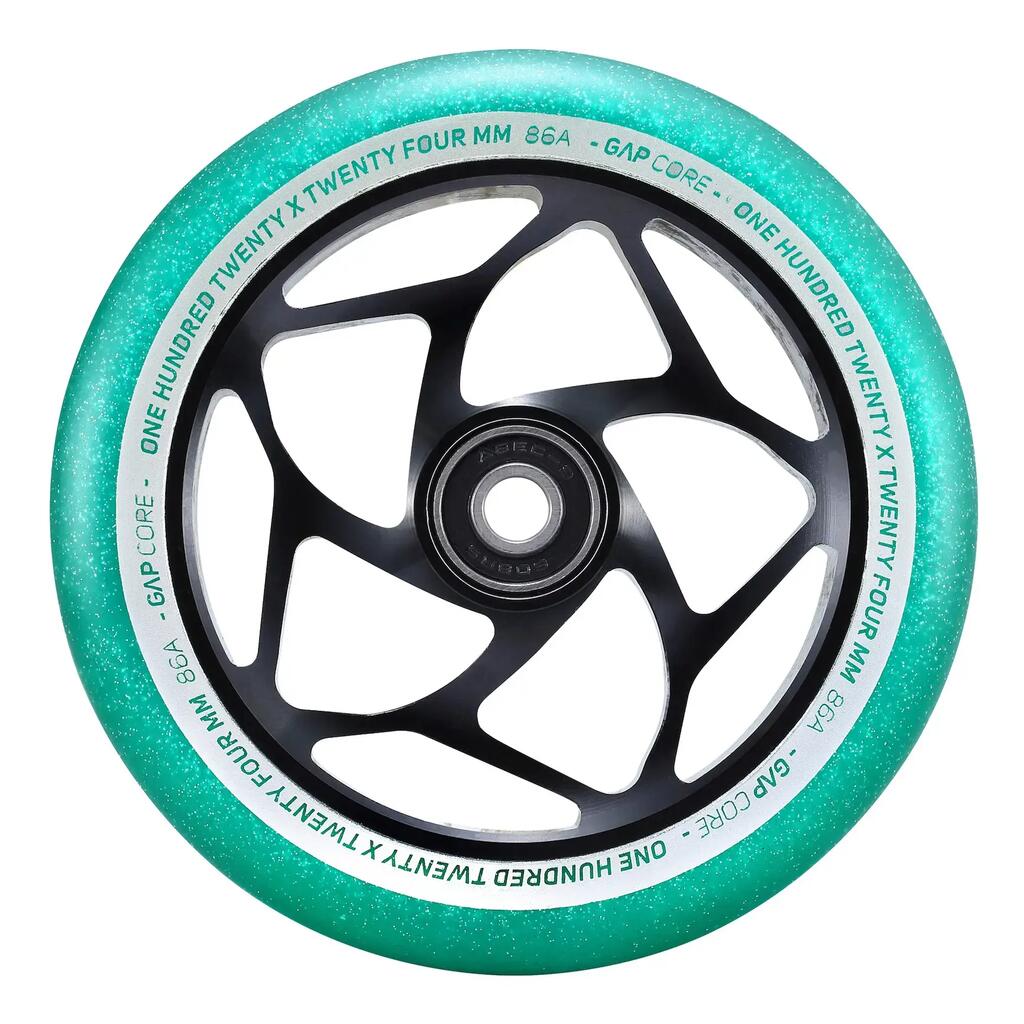 The BLUNT WHEEL 120MM GAP CORE wheels offer durability and style with their black/black design. Designed for performance, they ensure a smooth and long-lasting ride.