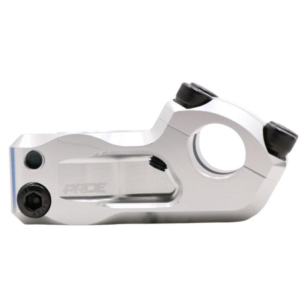 This stem CAYMAN V2 is an improvement of the CAYMAN at Pride Racing. New design, optimization of the rigidity. Thanks to its 48mm wide handlebar support surface, it is much more rigid and guarantees a better grip. Its design has been changed to reduce the weight, by hollowing out some areas. A stem entirely machined in one block with a CNC machine. Its Aluminium 6061-T6 is ultra strong and reliable, promising a durable part in time. Moreover, its screws are all identical, in stainless steel to avoid any corrosion. These screws are under the DIN 912 standard, which allows to find replacement screws easily.