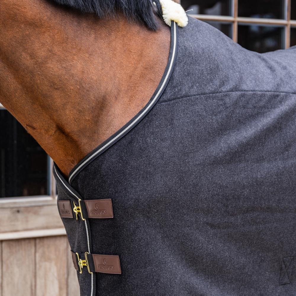 The Heavy Fleece Rug Melange combines style ,comfort ,and advanced functionality. Made from a warm and robust melange fabric ,it’s the perfect everyday rug to use after training ,bathing ,or