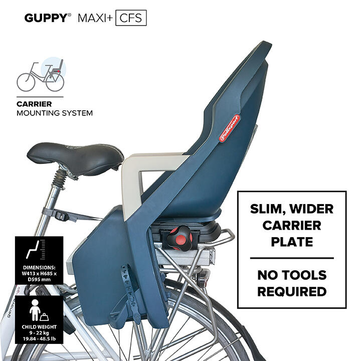 Carry your child in complete safety with the award-winning Polisport Guppy Maxi Cfs baby carrier, featuring innovative design and enhanced functionality for greater comfort.