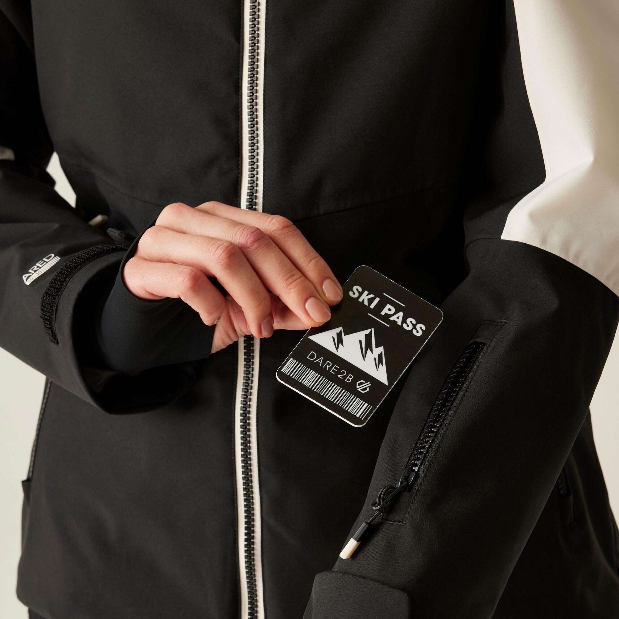 Discover the women's hooded ski jacket Dare 2B Iced, combining performance, comfort, and protection for your days on the slopes.
