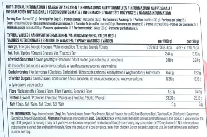 Applied Nutrition Critical Plant | Plant-based protein powder with declared nutritional information