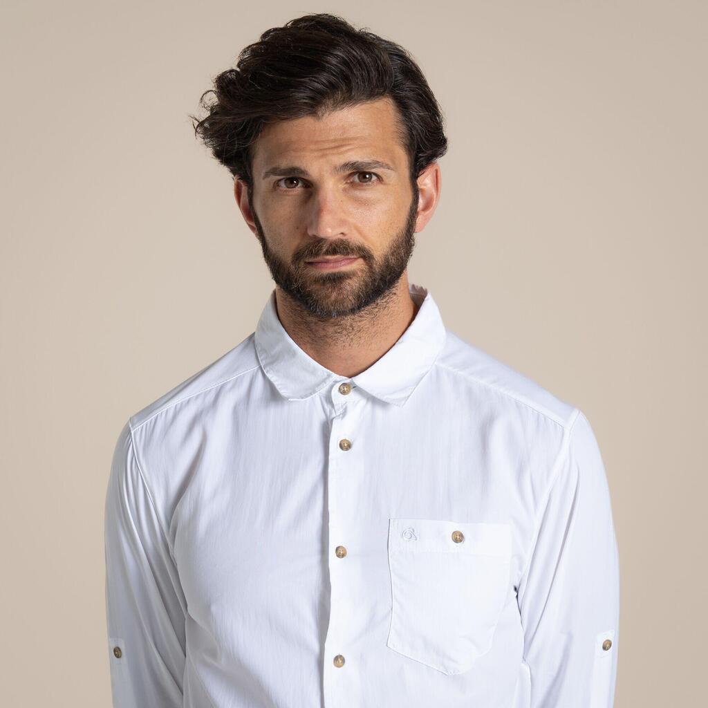 Lightweight travel shirt from Craghoppers. Built to perform in hot and humid conditions, ‘Nuoro’ long-sleeved shirt is made from quick-drying NosiLife insect-repellent and odour-elimination fabric to