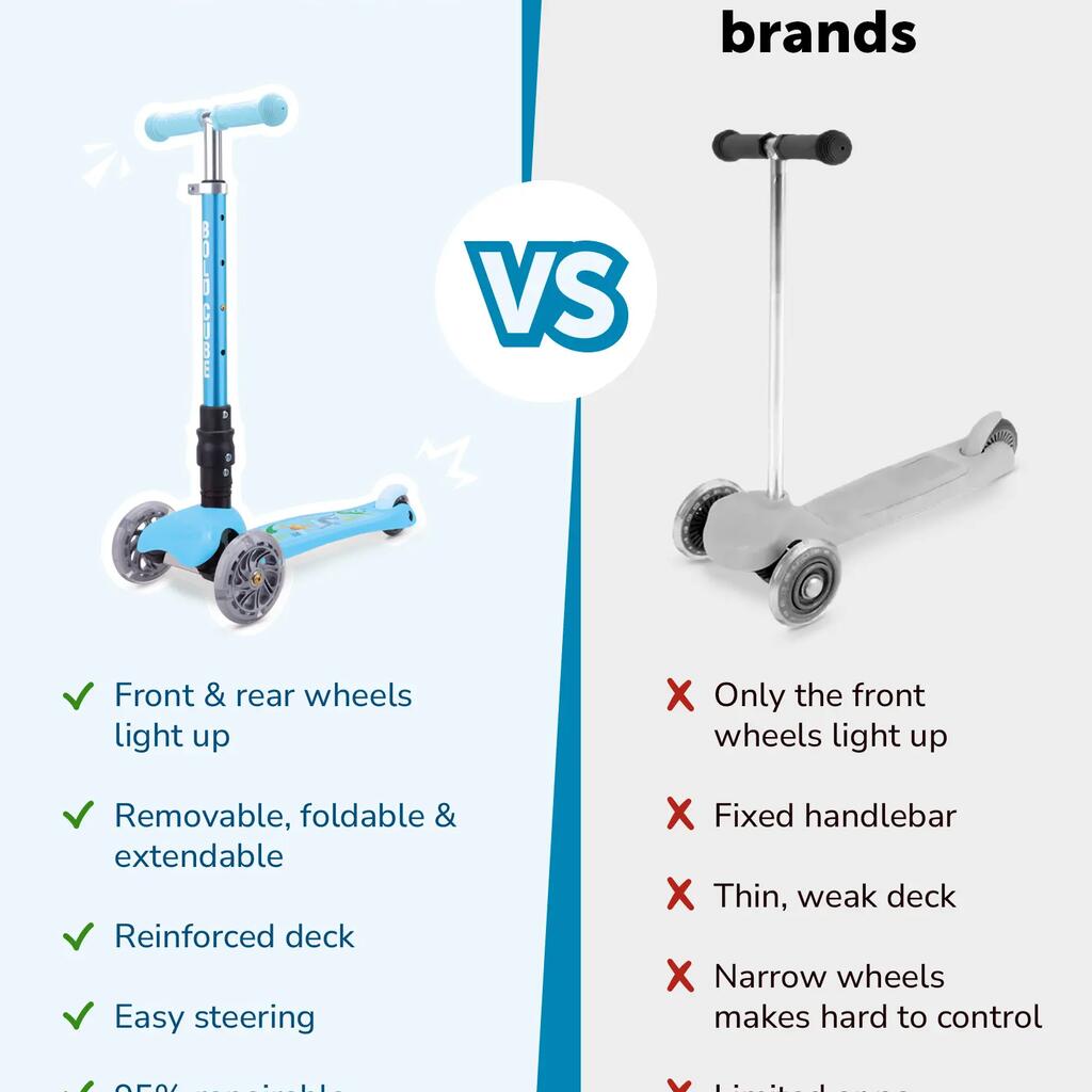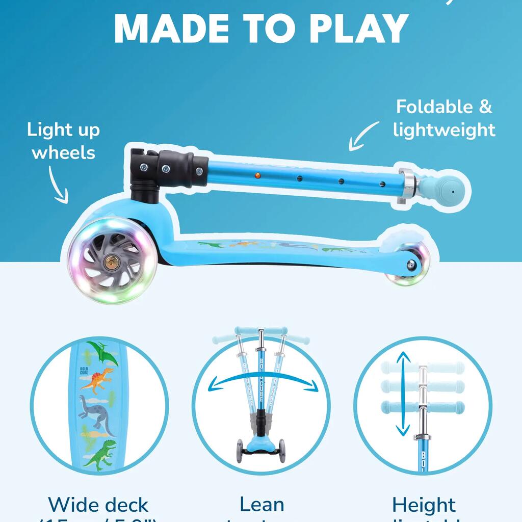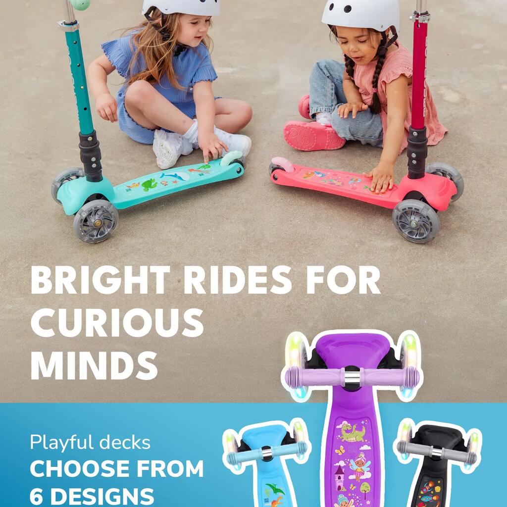 Featuring bright flashing lights (on front and rear) and a tough stomp brake, this self-balancing 3-wheel scooter stands out from the crowd without compromising on safety, functionality, or style.