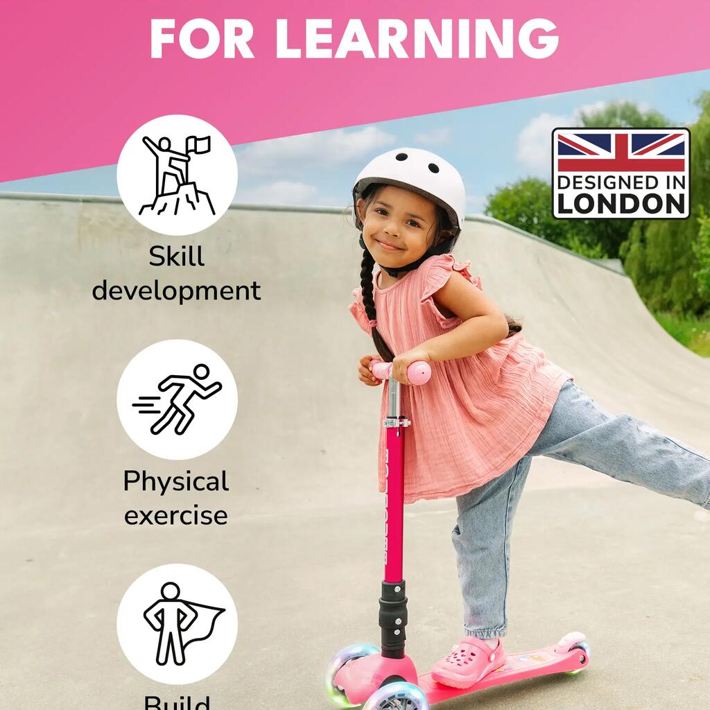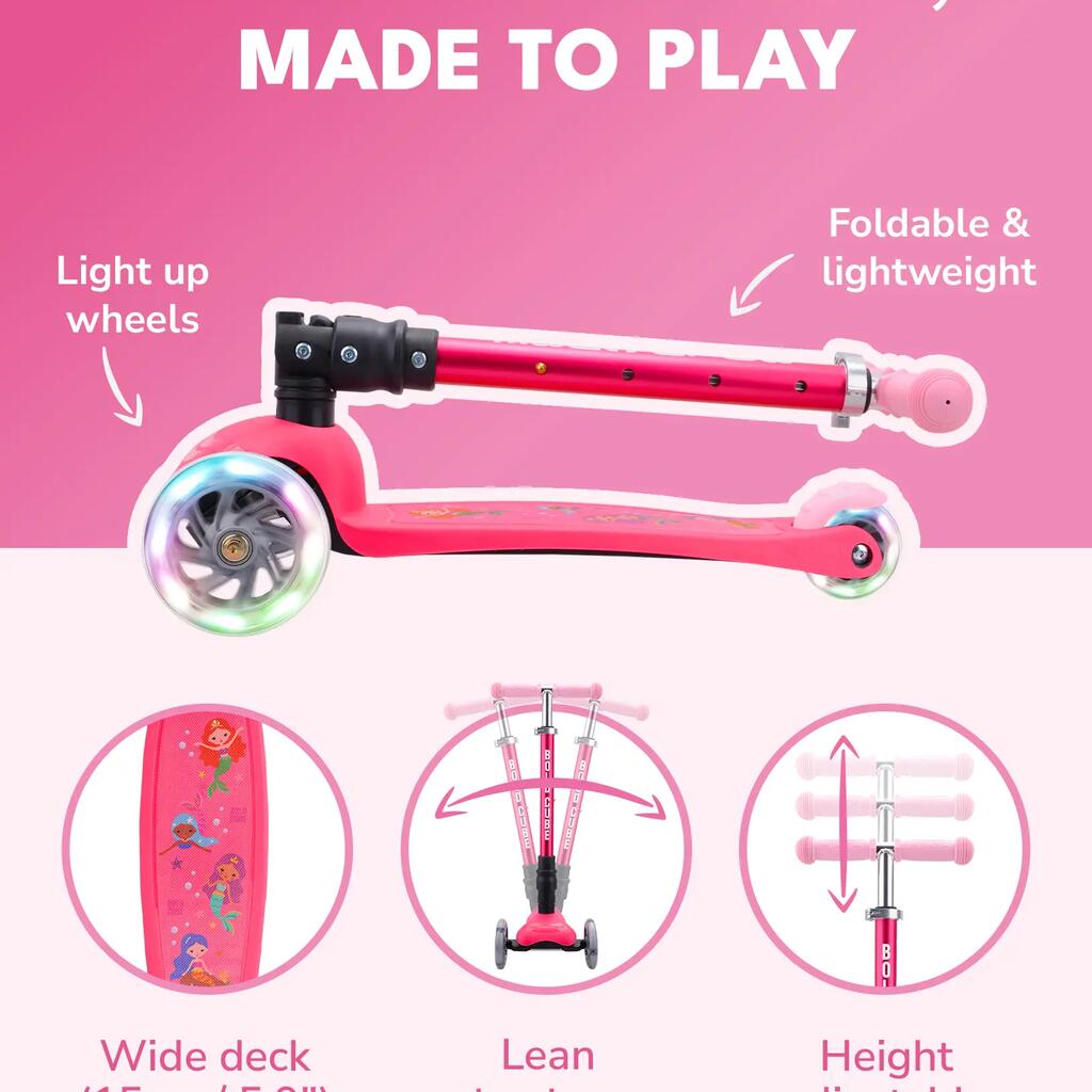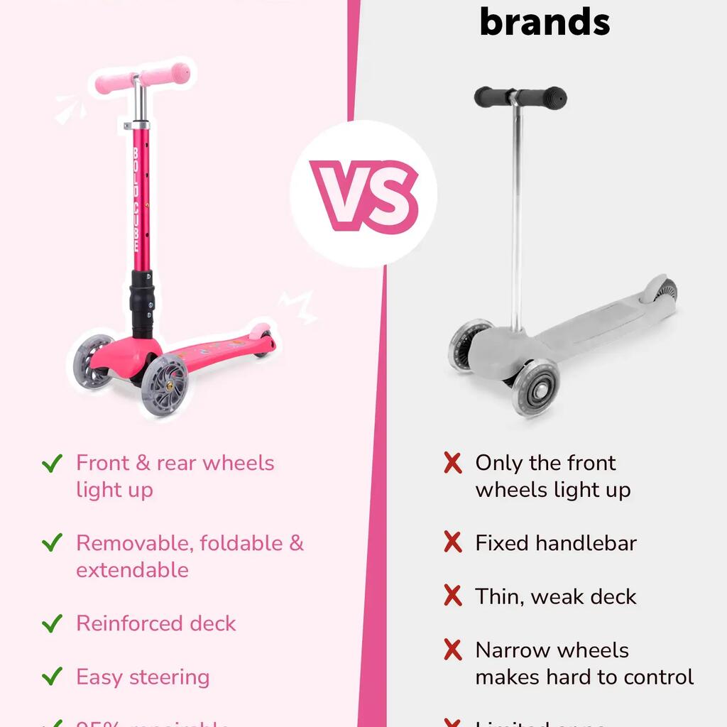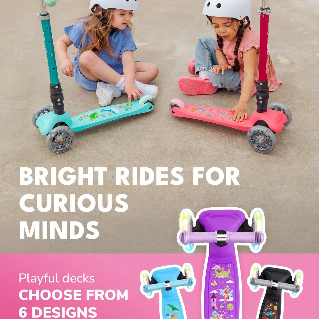Featuring bright flashing lights (on front and rear) and a tough stomp brake, this self-balancing 3-wheel scooter stands out from the crowd without compromising on safety, functionality, or style.