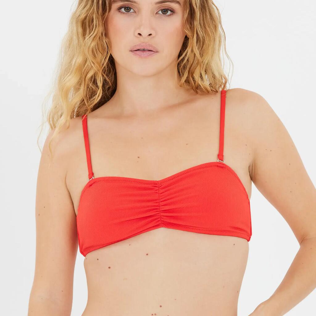 Discover the Athlecia Rhea women's bikini top, perfect for swimming. Convertible, feminine, and without annoying tan lines.