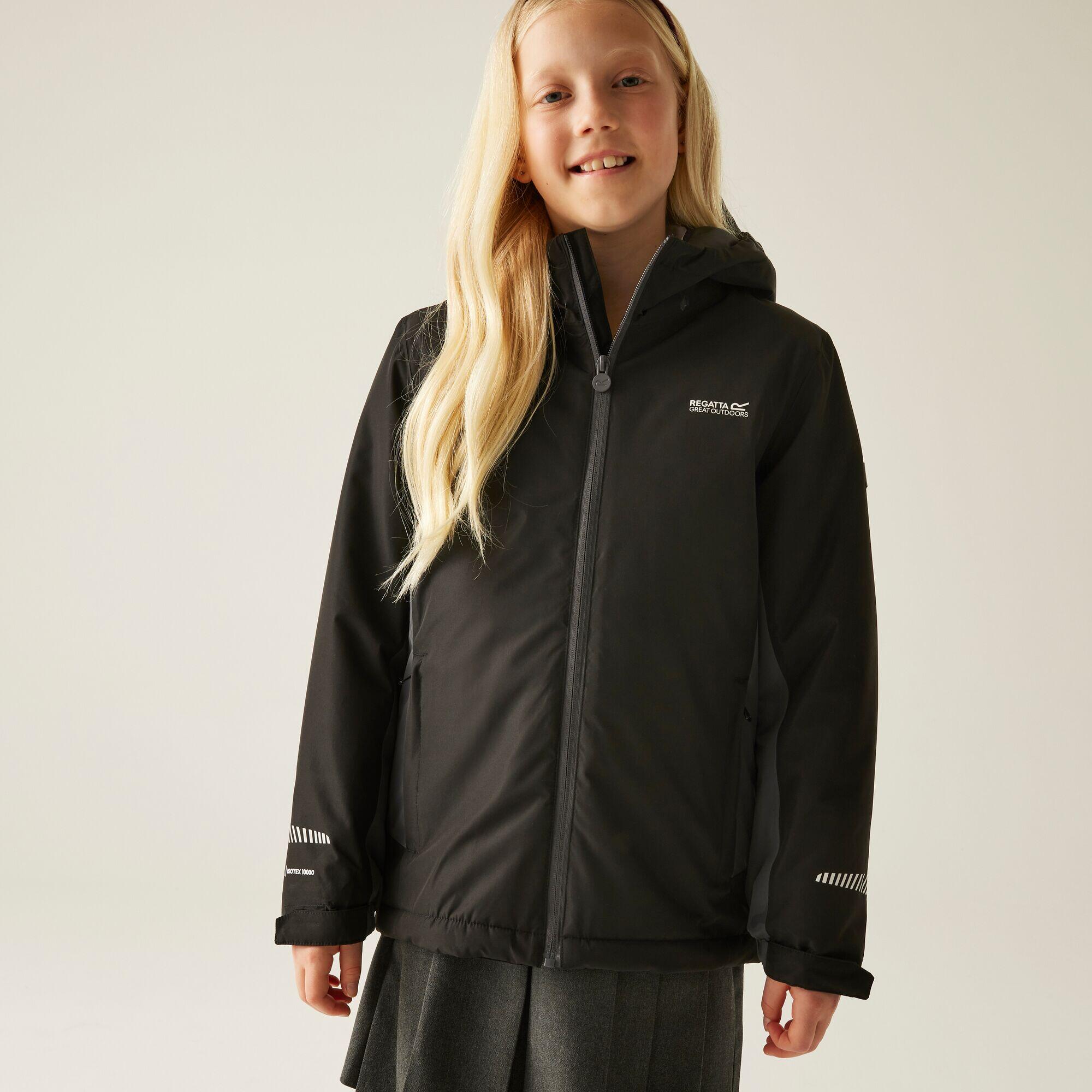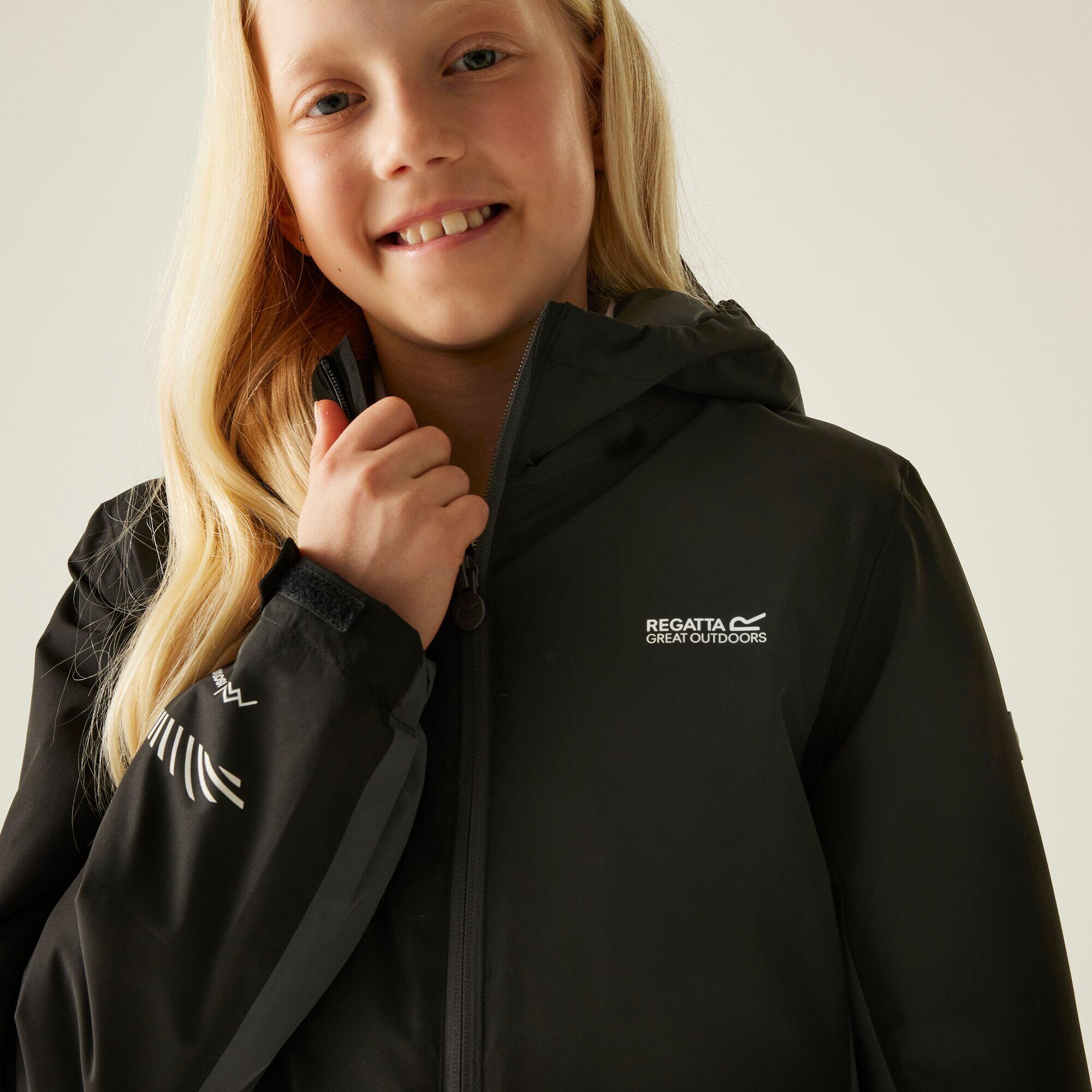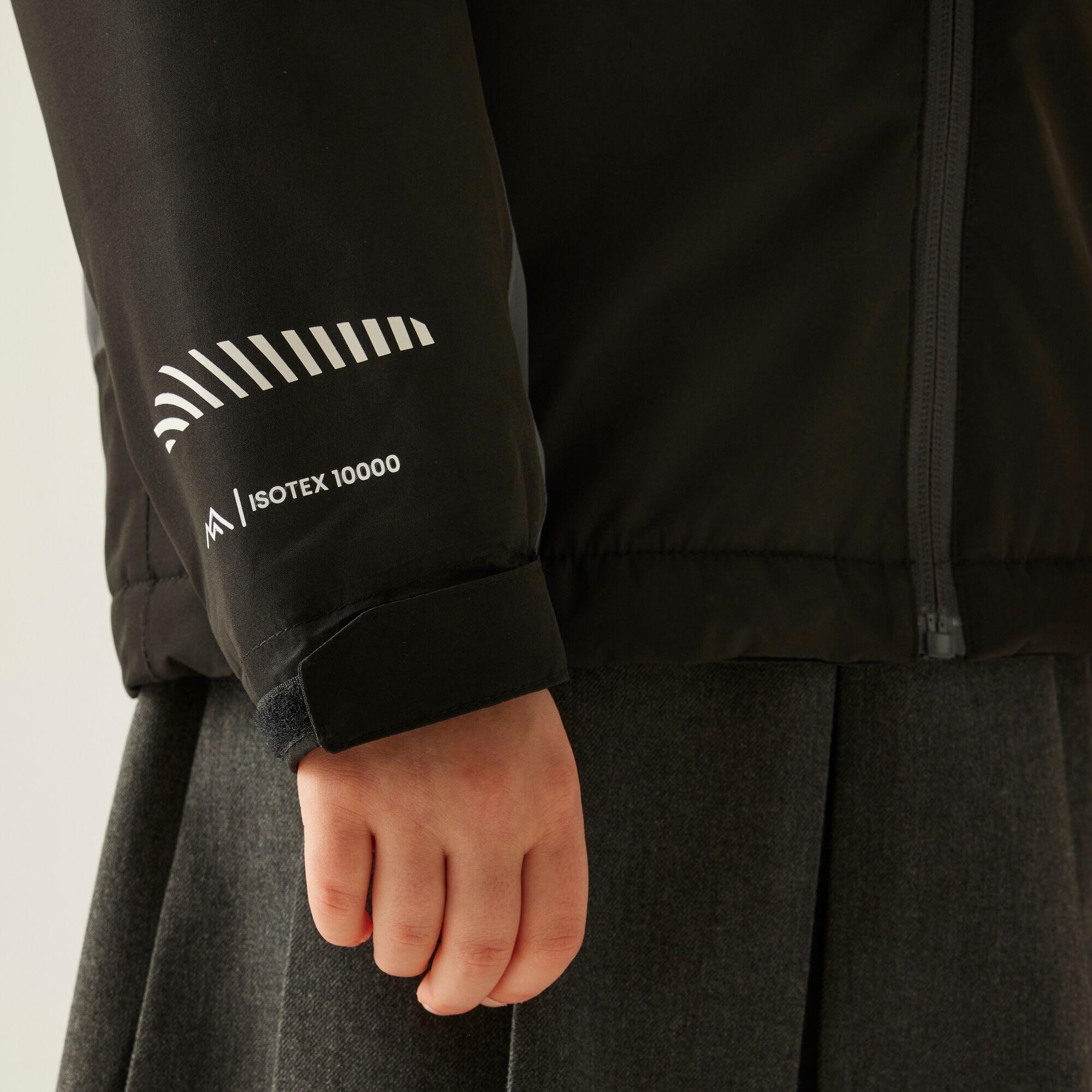 The Hurdle kids' jacket from Regatta is a warm, practical choice for outdoor adventures. Made with Isotex 10,000 fabric and Thermoguard insulation, it provides weather protection. Reflective trims.