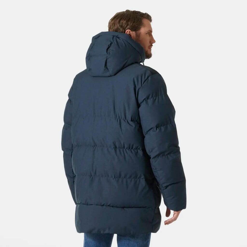 The long hooded down jacket for men Alby provides warmth for explorers and commuters during colder days – it's a longer parka for city life. With a 2-layer waterproof construction, this men's parka will keep you dry, while insulated synthetic baffles ensure exceptional heat retention. Hand pockets and a chest pocket, an adjustable hood, and a storm flap at the front offer extra functionality. This product is made with bluesign® certified materials. See the composition for details on recycled content.