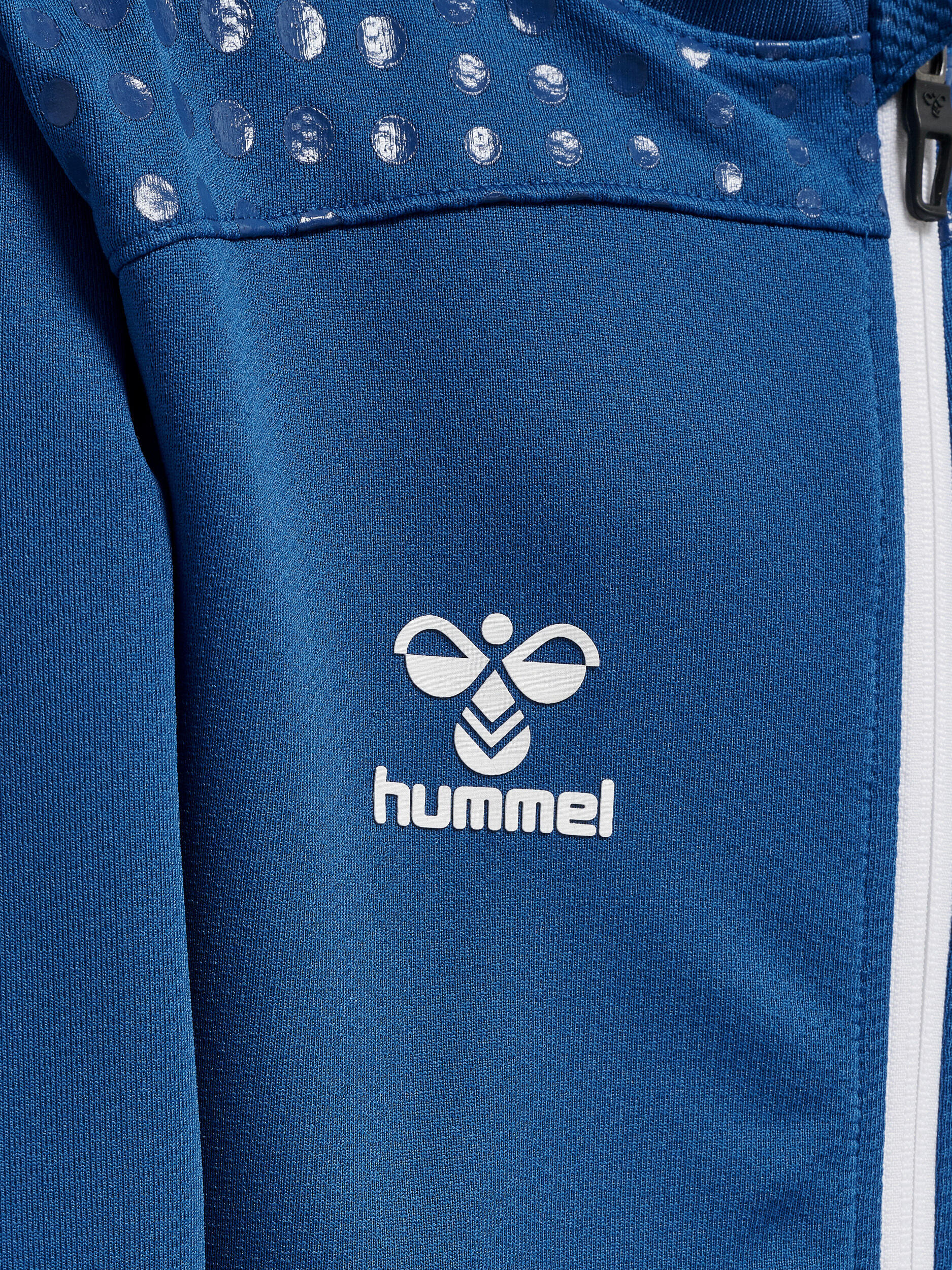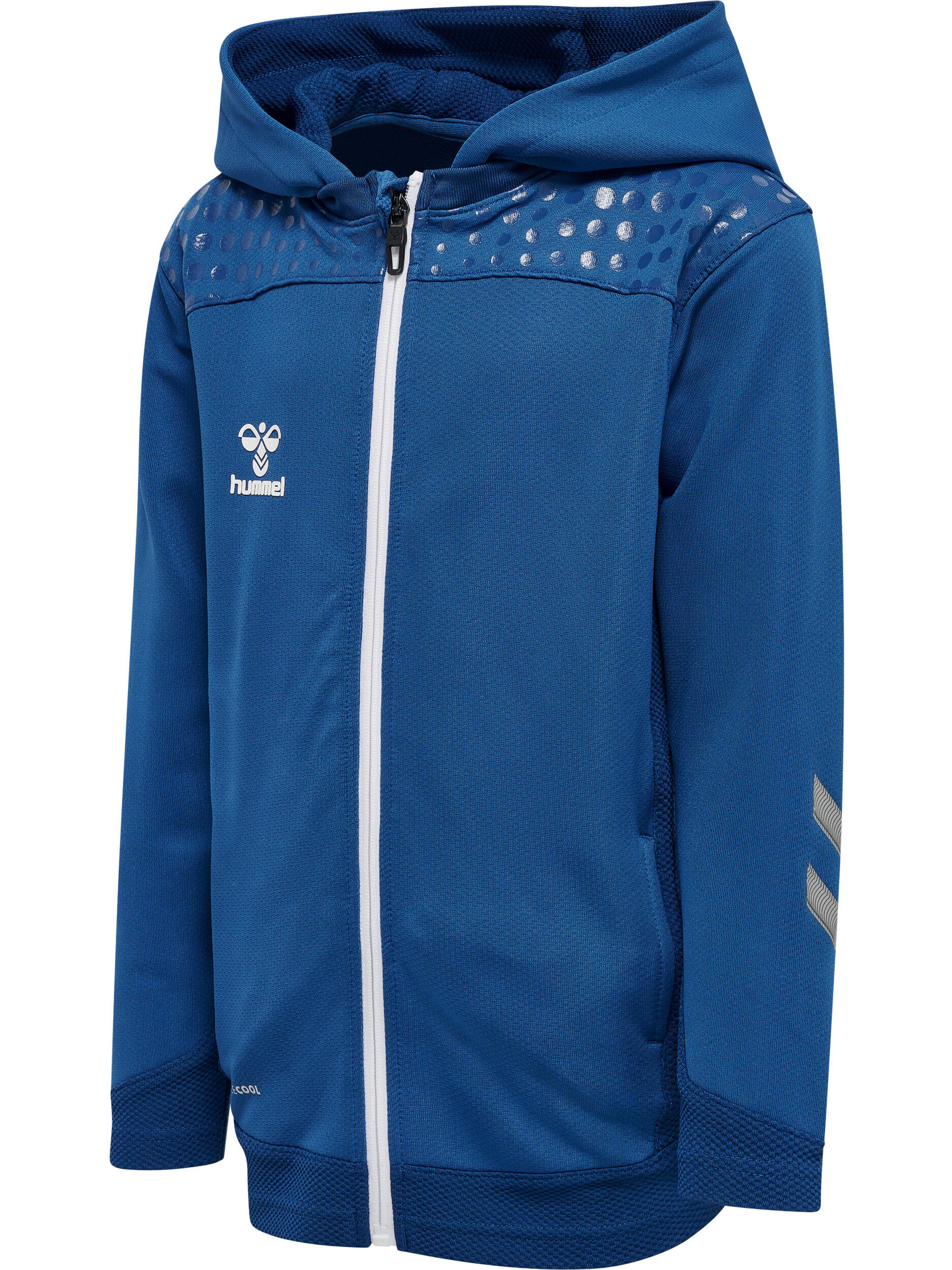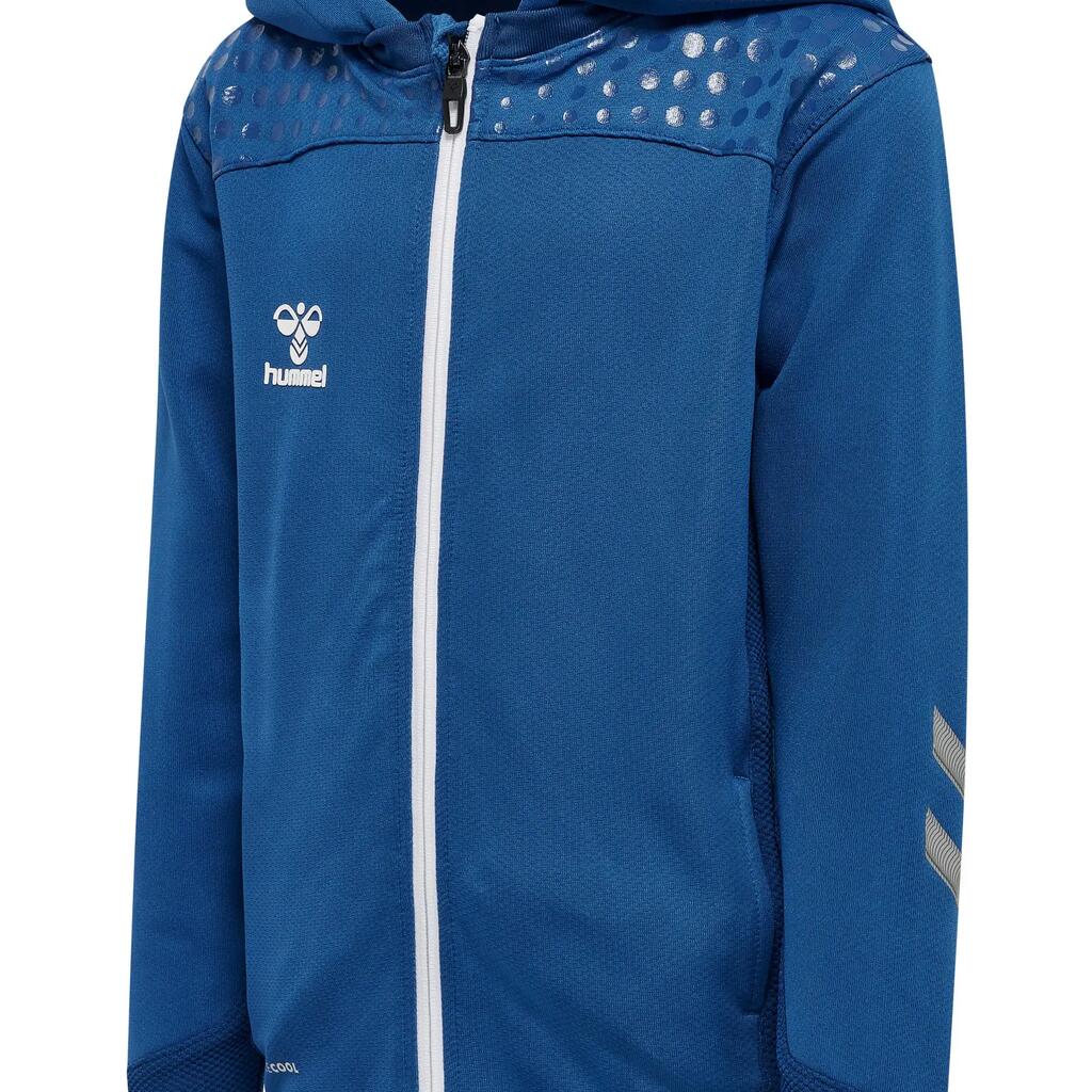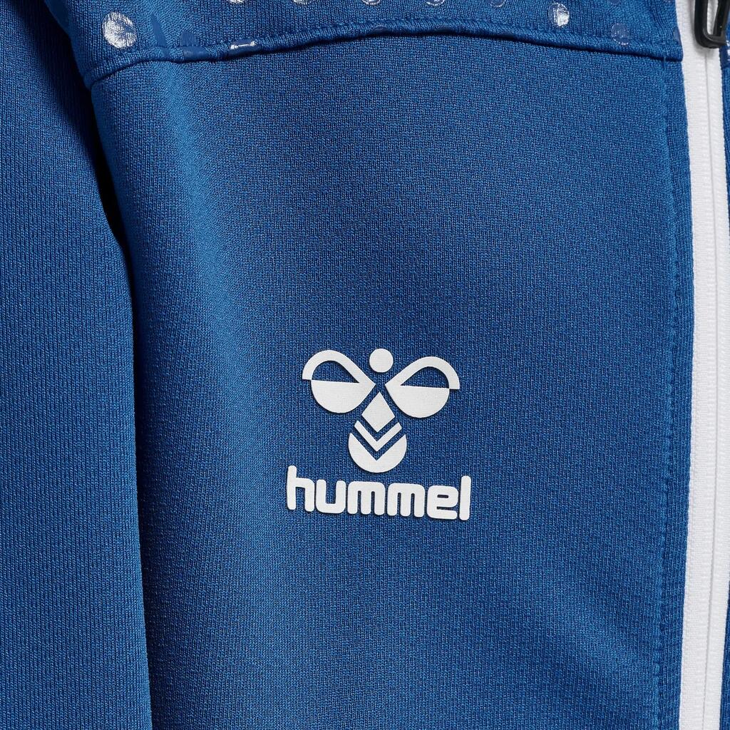 A zipped hoody for kids Hummel, with water-printed chevrons and logo. Versatile and comfortable for all activities.