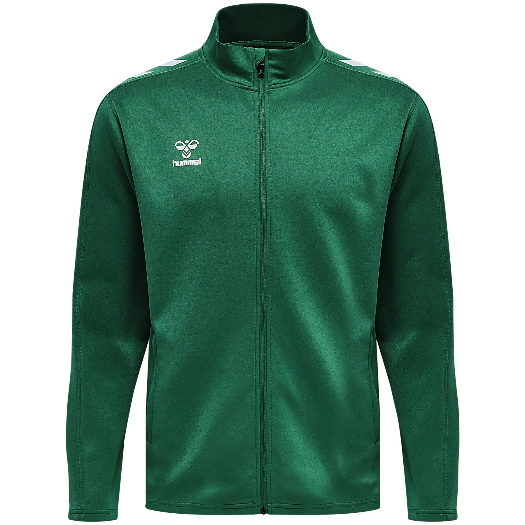 Stay dry and comfortable with the zipped tracksuit jacket Hummel Core XK Poly. Logo and elastic waistband for a sporty look, available in several sizes.